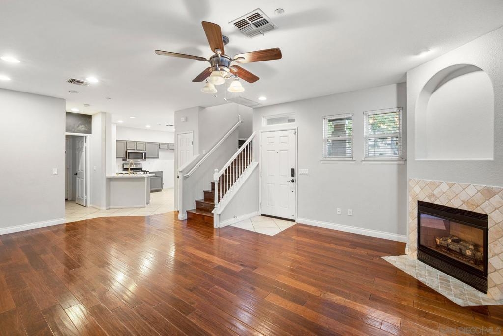 Beautiful 3 bedroom, 2.5 bathroom, 2 story condo with a neighborhood view patio in the community of Valencia at Rancho Carrillo in Carlsbad! Enjoy high ceilings, an inviting fireplace in the family room, and a gourmet kitchen. The kitchen offers marble-style countertops and stainless steel appliances. The primary bedroom features a spacious closet, dual vanities in the primary bathroom, and a shower-in-tub. Sliding doors lead to the outdoor patio. Additional property highlights include a laundry room, ceiling fans, wood and carpet flooring, and a 2 car garage. Community amenities include a swimming pool, spa, and walking paths. Convenient to area parks and a short drive to nearby beaches! Equipment: Range/Oven Topography: LL