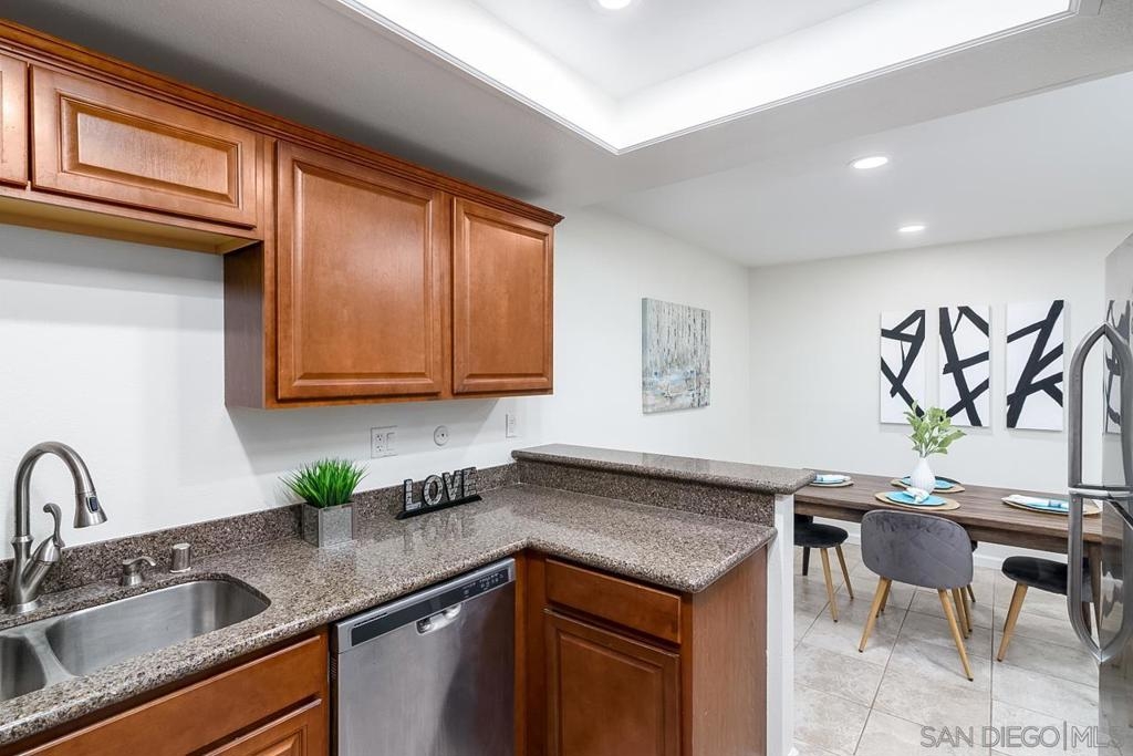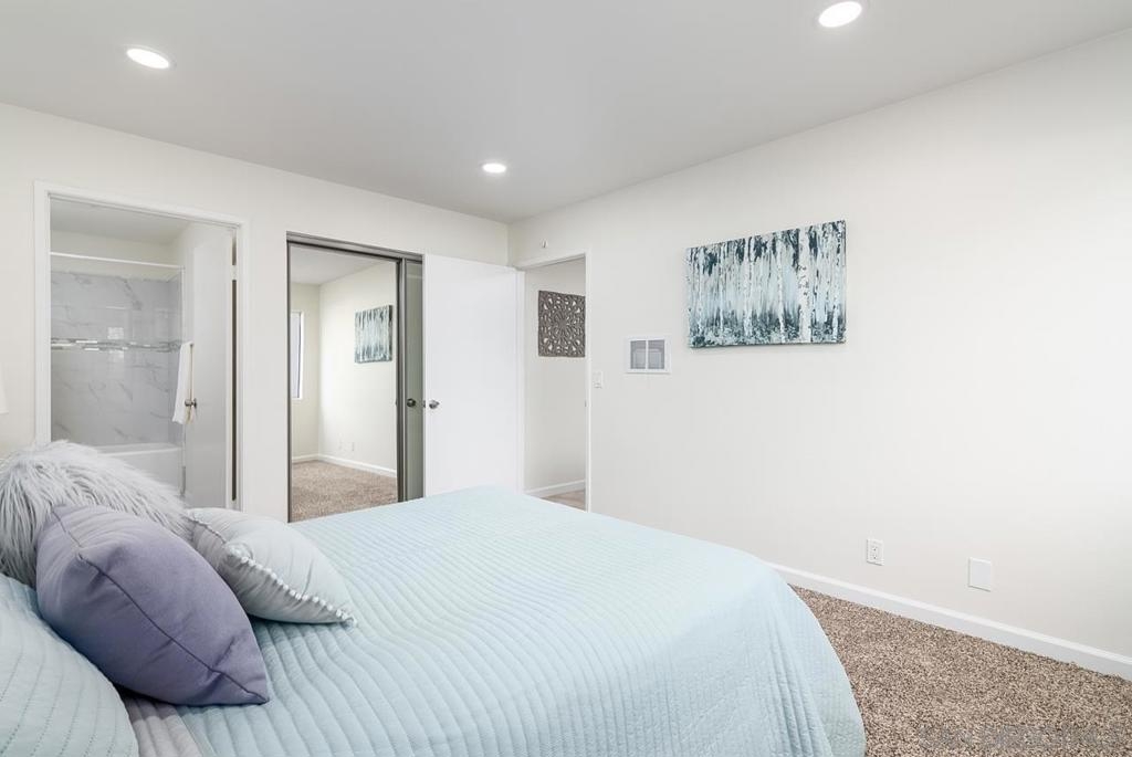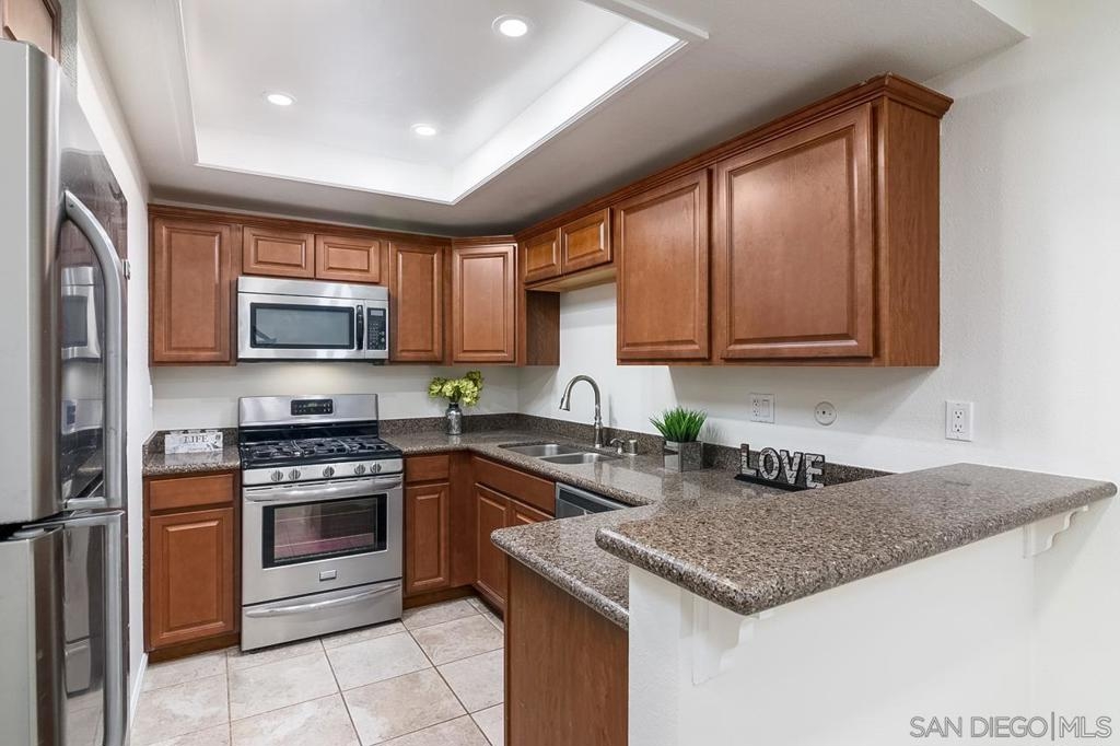 Back on market at no fault of seller! Rare single level condo with private yard, oversized one car garage and has been recently renovated! Located in a quiet complex in La Costa this home is walking distance to Vons, Cinepolis - luxury movie theater, La Costa Coffee, bars, restaurants, & is less than 10 minutes to the beach! The renovations include an upgraded kitchen boasting newer cabinets with granite countertops, stainless steel appliances and travertine tile. The home has also been freshly painted along with brand new carpet and recessed can lighting throughout. The owner spared no detail with the renovations having also included the bathroom being modernized with a new marble shower and soaking tub. This charming unit offers a spacious open floor plan with a huge master bedroom, a large bathroom, and oversized garage that includes additional storage. Add Low HOA's that include water, trash, sewer, pool & spa.