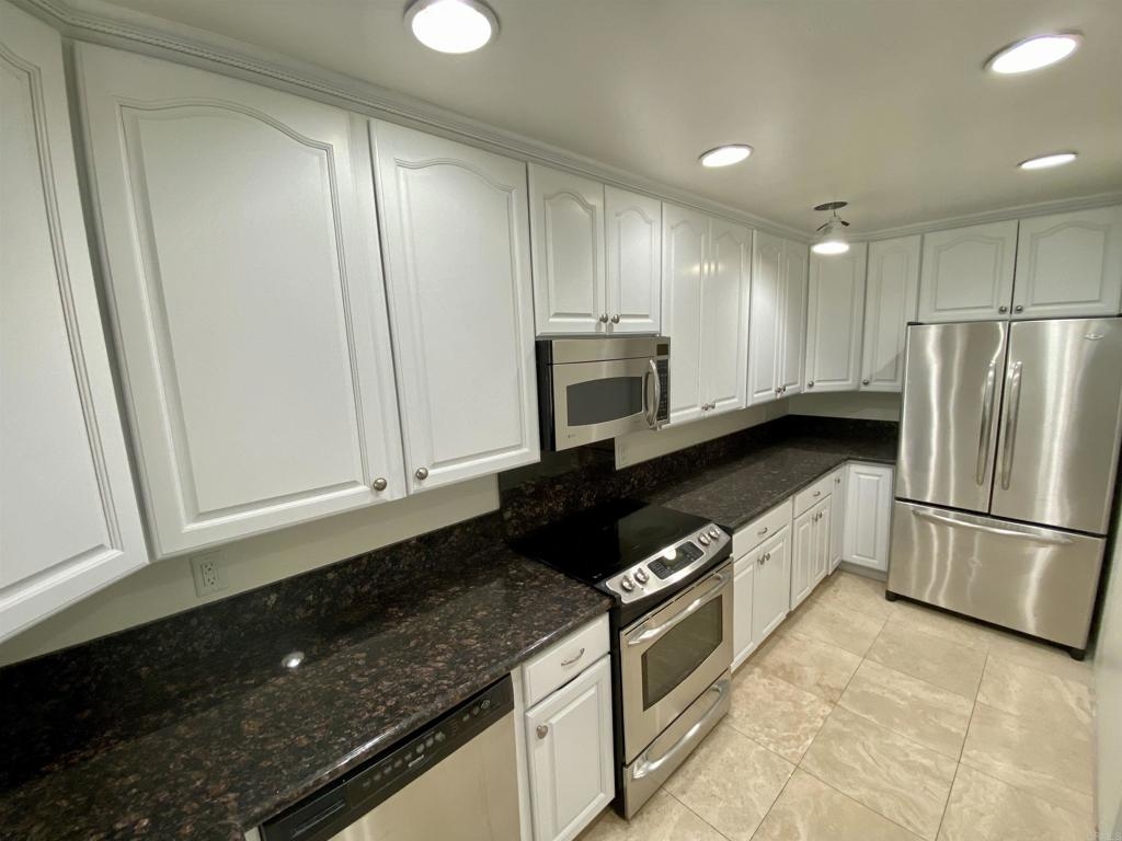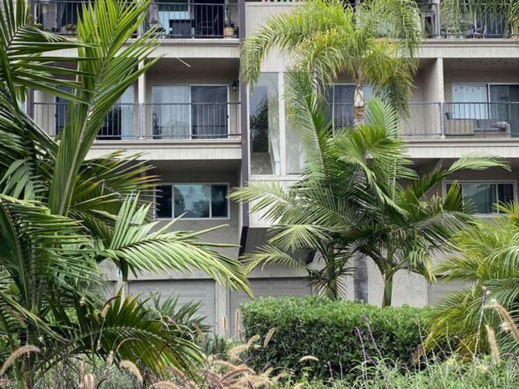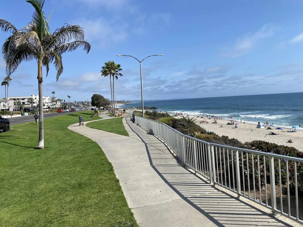 *BEST PRICED Beach condo within walking distance to the beach! West of I-5 & close to the lagoon & village! Gated complex! Beautiful tropical views from most rooms! Big bedrooms, bathrooms, closets & kitchen! 2 Master bedrooms (1 with a large walking closet & the other with 2 closets!), Additional large room for a den, optional office or? Remodeled & upgraded kitchen & baths! Newer quartz counters, appliances, cabinets, stainless steel appliances, tile & carpet flooring, plumbing & lighting fixtures, electrical switches & outlets, tiled bathrooms & showers, recessed lighting & more! Inside laundry, walk in closet, 2 view decks & patio, bar area w/room for a small fridge. Gated community w/pool! 1 car attached garage + 1 assigned space. Low HOA of $350 includes exterior maintenance, roof & termite, sewer trash & water & allows 30 day min. (or more) short term rentals.