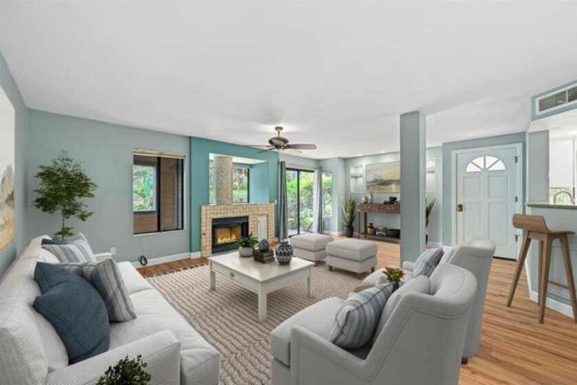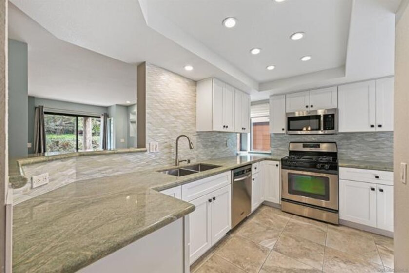 Experience resort-style living in this beautifully maintained home surrounded by lush greenery, a sparkling pool, and a relaxing spa—it truly feels like vacation every day. Ideally located just minutes from the sand and in the heart of Carlsbad, this residence offers the perfect blend of coastal lifestyle and everyday comfort. The thoughtfully updated 2024 kitchen shines with granite countertops, a stylish tile backsplash, brand-new cabinetry, and stainless steel appliances. Wide LVP flooring throughout both levels and new shutters add a fresh, modern feel, making this home completely move-in ready, clean, and meticulously cared for. One of the few units with an attached garage, the property also features two private patios—including one off the kitchen, perfect for al fresco dining—and an extra storage cabinet on the back patio for added convenience. This is coastal living at its absolute best.
