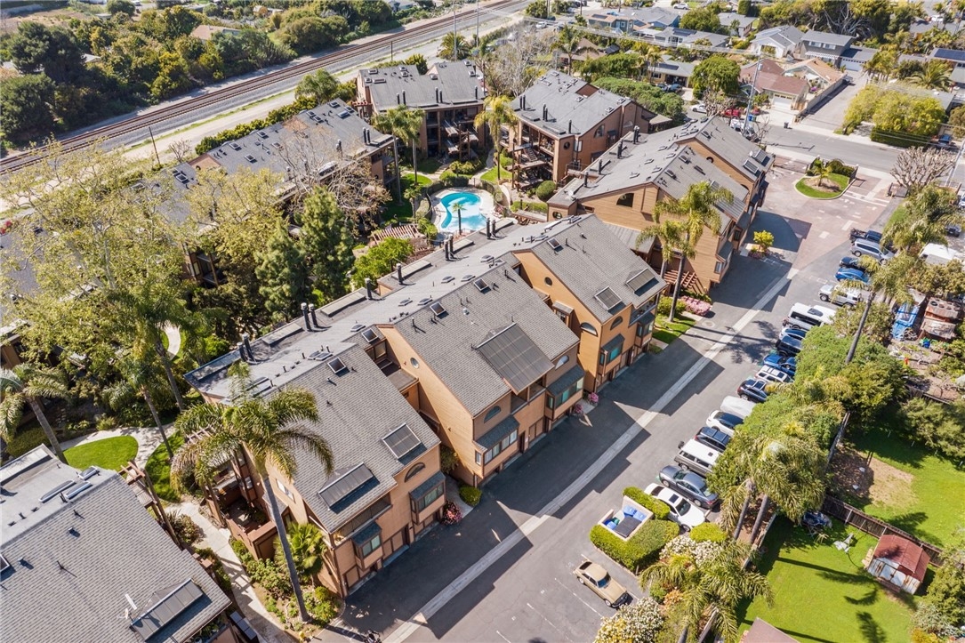 Welcome to the best of beach living, this unit is one of the few with a peekaboo OCEAN VIEW- perfectly located in Windsong Cove, a resort inspired, gated complex located just a short walk or bike from Tamarack Beach, the lagoon, and the vibrant downtown village with its shopping and dining options. This home features 1595 square feet, not including the finished bonus room off of the guest bedroom of 116 additional square feet. The entry features a welcoming front porch, enjoy the open floor plan that includes a half bath, bright and open living room with gas fireplace, dining area and kitchen, plus a 120 square foot covered patio with westerly views overlooking the incredibly lush grounds. The upstairs features the Primary suite, with private bath and fantastic views from the spacious 120 square foot covered deck plus private outside stairs to the lower level and pool beyond. There is a spiral staircase to the versatile loft space and the laundry is between the two bedrooms. This home is light and bright with skylights and a very convenient floor plan. Windsor Cove offers a gated pool, two private Jacuzzis, outdoor restrooms, lovely covered gathering space and meandering streams and incredible lush mature landscaping. This unit features a one car garage and one designated parking space. Commute to San Diego or Orange County from the Coastal Rail just 5 minutes from this complex. This is beach living at its best. The Windsong Cove Special Roof Assessment has been determined to be $14,400 per unit; Seller will pay the full amount of the special roof assessment at close of escrow.