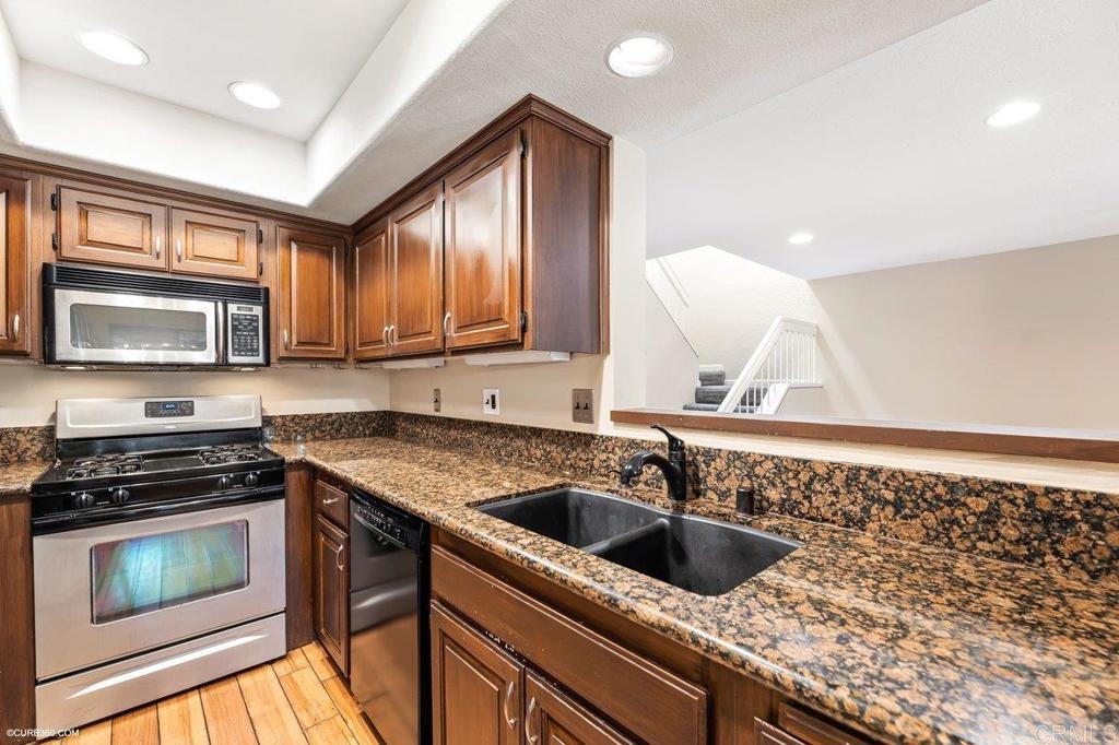 Welcome home to this beautiful West of the 5, beachside upper level townhome walking distance to both the beach and Carlsbad Village! Tucked away on a quiet cul de sac in a gated complex, this home boasts 2 beds + 2 baths with attached enclosed sunroom perfect for conversation to den, office space or patio seating along with overhead loft space ideal for additional storage or future build out. Vaulted ceilings, skylight & new recessed lighting invite lots of natural light while the spacious bathrooms with oversized soaking tubs offer the perfect retreat after a long beach day. Home boasts indoor laundry, fireplace and mini bar great for entertaining along with three balconies and both front and back access. Stainless steel appliances, granite countertops and flooring adorn the first floor with balcony views out over the tranquil community ponds surrounded by lush landscaping. Private one-car garage along with additional deeded parking space for convenience. Windsong gated community boasts lush landscaping in common areas and resort-style amenities including pool, spas, barbecue area and walking paths.