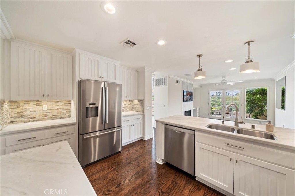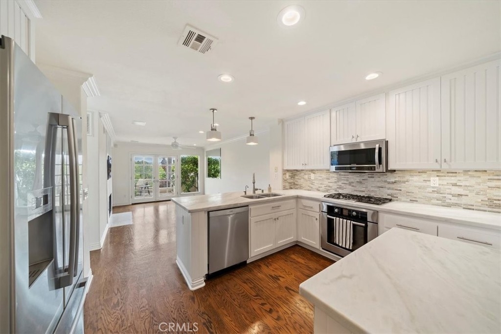 Welcome to 1616 Cormorant, located in the gated, private community of Aldea set in the coveted Aviara development of Carlsbad. This beautiful, 3 bedrooms/2.5 bathrooms townhome sits above the 16th fairway with sweeping Aviara Golf Course and canyon views. Once you enter this spacious home, you'll notice all the windows bringing in lots of natural light, soaring vaulted ceilings and extensive, high-end upgrades throughout. Some of the many tasteful upgrades to this special home include two sets of French doors leading to the private backyard, completely updated bathrooms and kitchen with custom tile work, stone and marble countertops and custom cabinetry, water filtration system in kitchen, tile fireplace and hearth, multiple built-ins and bookshelves, built-in speakers, crown moldings, plantation shutters, hardwood and tile flooring, ceiling fans in all bedrooms, living room and family room/den, cedar-lined bedroom closets with built-in organizers/drawers/shelving and an updated staircase featuring metal railings providing a modern aesthetic to this beautiful home. The primary bedroom has a private balcony overlooking endless golf course views with a large, custom ensuite bath and walk-in closet. The spacious backyard with its paved patio is an entertainer's dream with ample space to relax, ensuring peace and tranquility while enjoying the views. An in-ground spa, outdoor hot/cold shower, gas firepit and built-in BBQ surrounded by lush landscaping provides everything needed for your outdoor oasis. Conveniently located just minutes away from the 5 freeway, dining, shopping, excellent schools and Carlsbad beach. Experience luxury living in this desirable townhome in Aviara's sought-after Aldea community.