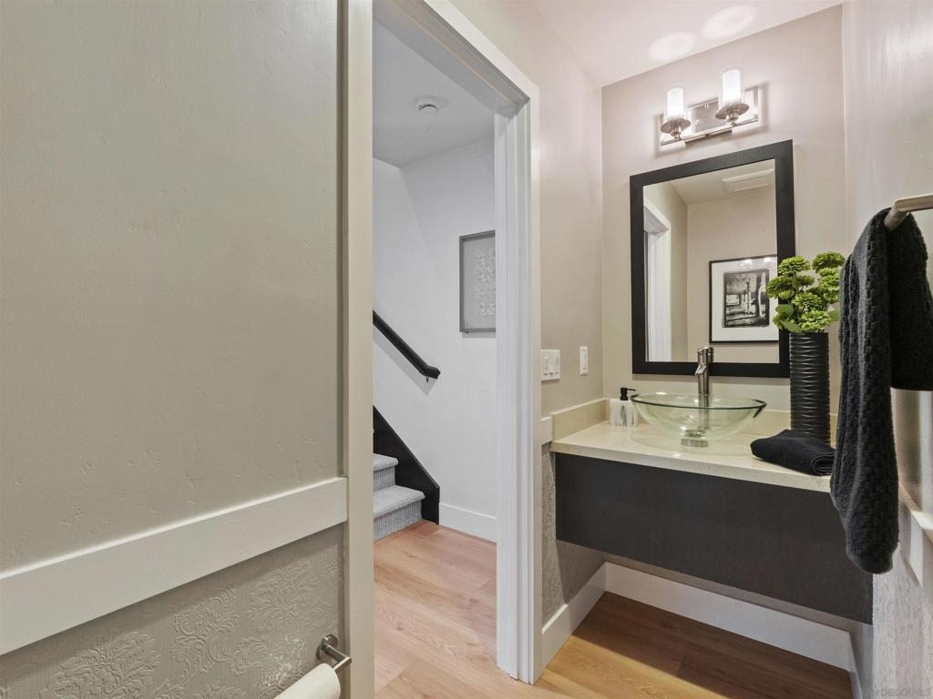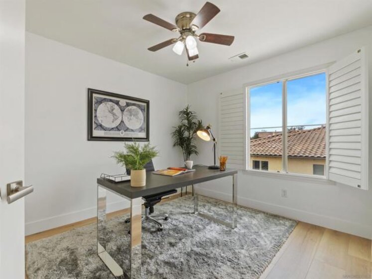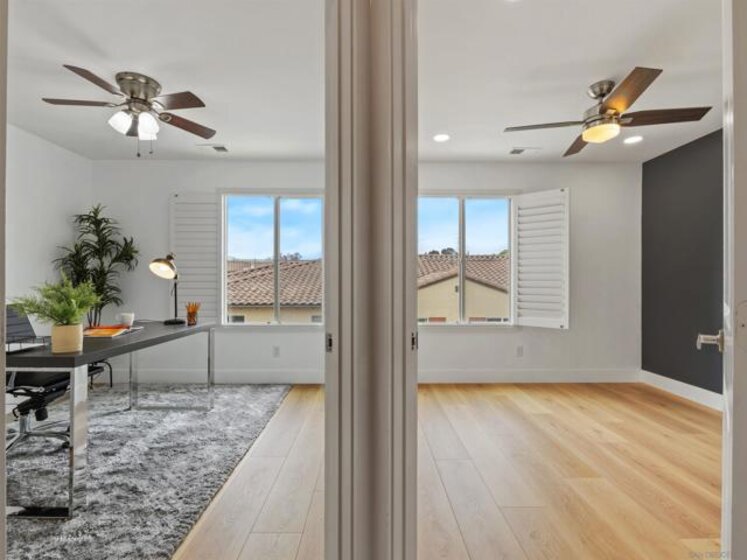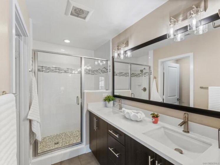 Welcome to this stunning Plan 2 residence in the exclusive gated community of Voscana, ideally located in the highly desirable Aviara neighborhood of Carlsbad. Beautifully upgraded throughout, this exceptional home showcases wide-plank laminate flooring, custom interior paint, and newer appliances, including a cooktop, dishwasher, washer/dryer, and modern ceiling fans. The spacious attached two-car garage is thoughtfully enhanced with epoxy flooring and a Tesla universal charger. Designed with an open-concept layout, the home is filled with natural light and offers seamless indoor-outdoor living with an expansive front patio. Additional highlights include California Closets in the bedrooms, a generous kitchen island, and numerous designer touches throughout—making this a truly exceptional opportunity not to be missed. Welcome to this stunning Plan 2 residence in the exclusive gated community of Voscana, ideally located in the highly desirable Aviara neighborhood of Carlsbad. Beautifully upgraded throughout, this exceptional home showcases wide-plank laminate flooring, custom interior paint, and newer appliances, including a cooktop, dishwasher, washer/dryer, and modern ceiling fans. The spacious attached two-car garage is thoughtfully enhanced with epoxy flooring and a Tesla universal charger. Designed with an open-concept layout, the home is filled with natural light and offers seamless indoor-outdoor living with an expansive front patio. Additional highlights include California Closets in the bedrooms, a generous kitchen island, and numerous designer touches throughout—making this a truly exceptional opportunity not to be missed.