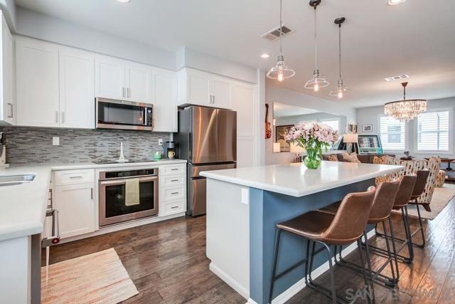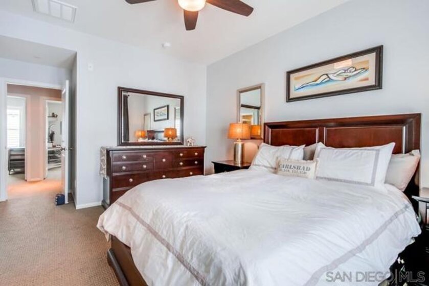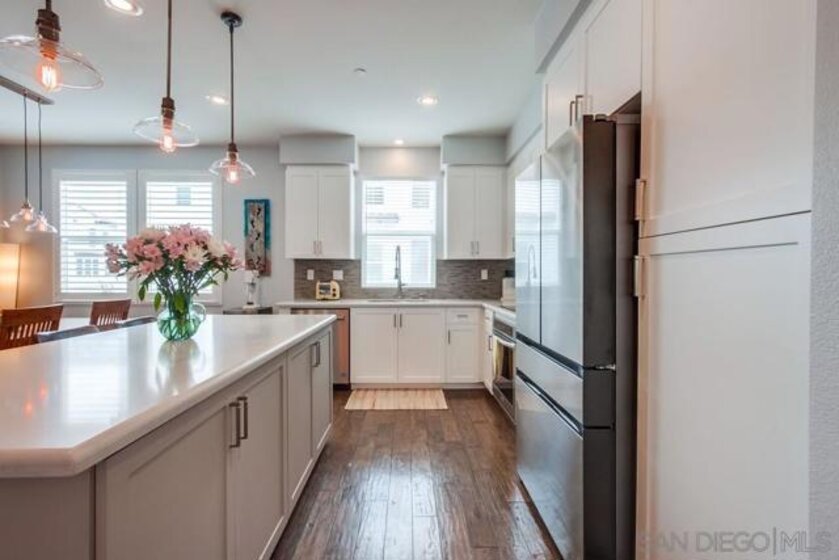 Welcome to your dream home in the exclusive La Costa Collection of South Carlsbad! This stunning townhome offers the perfect blend of modern luxury & practical living. Step inside to discover the versatility of the first floor, featuring an optional bedroom, ideal for a home office or personal gym space. On the second floor, embrace the open floor plan designed for modern living. The spacious chef’s kitchen is a culinary delight, showcasing a large island with quartz countertops, ample cabinet space with convenient pull-out shelving, & state-of-the-art stainless steel appliances. The adjacent dining area & living room, complemented by a half bath, create an inviting atmosphere for entertaining guests. Ascend to the third floor, where all three bedrooms are thoughtfully positioned, including the luxurious primary suite. Enjoy the privacy of your en-suite bathroom, the convenience of a walk-in closet, & the serenity of a private balcony. The home also features PAID SOLAR, designer lighting, shutters, custom closet organizers in all bedrooms, central heating & A/C, in-unit laundry, & paid-off solar. The attached 2-car garage offers custom SafeRack overhead storage. Outside, the front porch patio offers a perfect setting for relaxing or enjoying BBQs with family & friends. The resort-style community features a pool, BBQ area, & lush green spaces. Located within walking distance to Plaza Paseo Real’s dining & entertainment, Carlsbad library, shopping, & top-rated schools. Additionally, you’ll be just minutes from beautiful beaches, golf courses, parks, & hiking. Welcome to your dream home in the exclusive La Costa Collection of South Carlsbad! This stunning three-story, solar powered townhome offers the perfect blend of modern luxury & practical living. Step inside to discover the versatility of the first floor, featuring an optional bedroom, ideal for a home office or personal gym space. On the second floor, embrace the open floor plan designed for modern living. The spacious chef’s kitchen is a culinary delight, showcasing a large island with quartz countertops, ample cabinet space with convenient pull-out shelving, & state-of-the-art stainless steel appliances. The adjacent dining area & living room, complemented by a half bath, create an inviting atmosphere for entertaining guests. Ascend to the third floor, where all three bedrooms are thoughtfully positioned, including the luxurious primary suite. Enjoy the privacy of your en-suite bathroom, the convenience of a walk-in closet, & the serenity of a private balcony. The home also features designer lighting, shutters, custom closet organizers in all bedrooms, central heating & A/C, in-unit laundry, & paid-off solar. The attached 2-car garage offers custom SafeRack overhead storage. Outside, the front porch patio offers a perfect setting for relaxing or enjoying BBQs with family & friends. The resort-style community features a pool, BBQ area, & lush green spaces. Located within walking distance to Plaza Paseo Real’s dining & entertainment, Carlsbad library, shopping, & top-rated schools. Additionally, you’ll be just minutes from beautiful beaches, golf courses, parks, & hiking.
