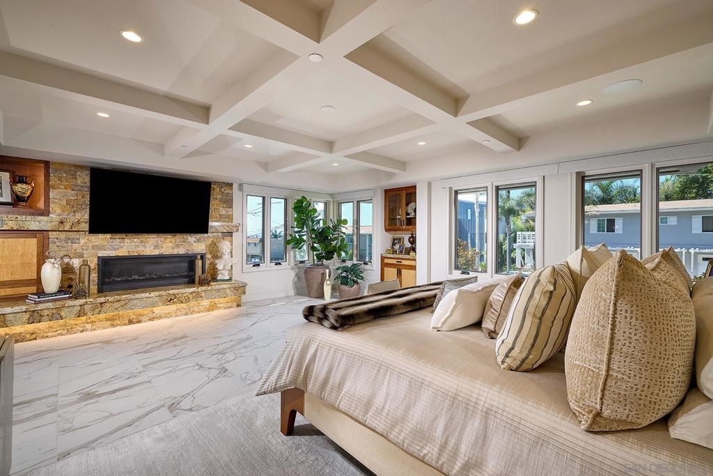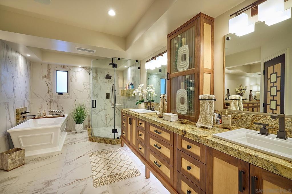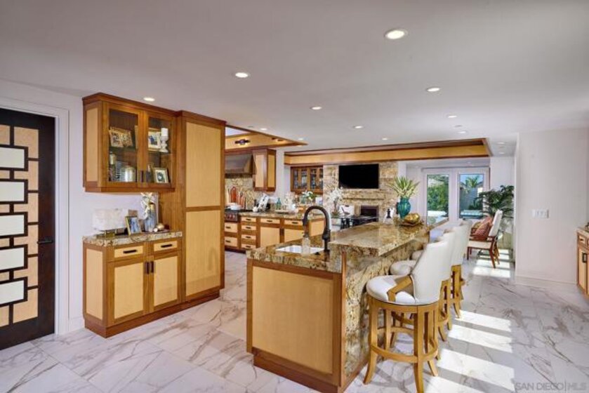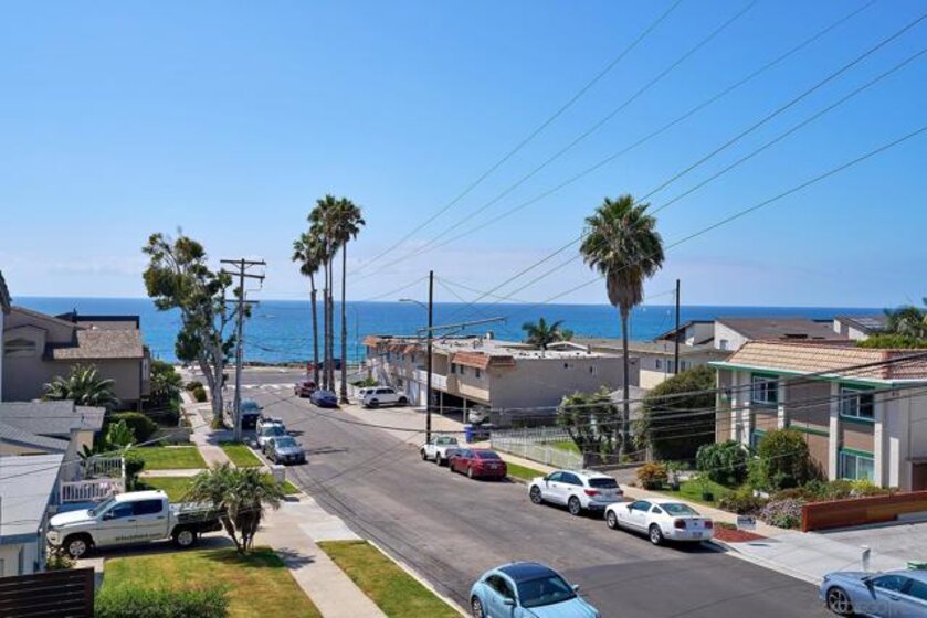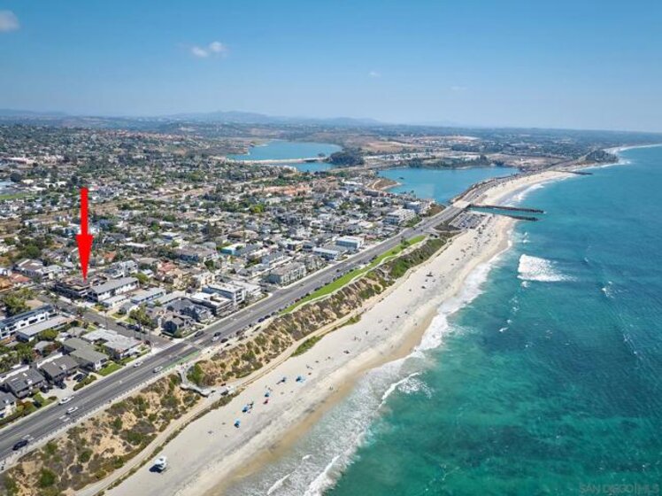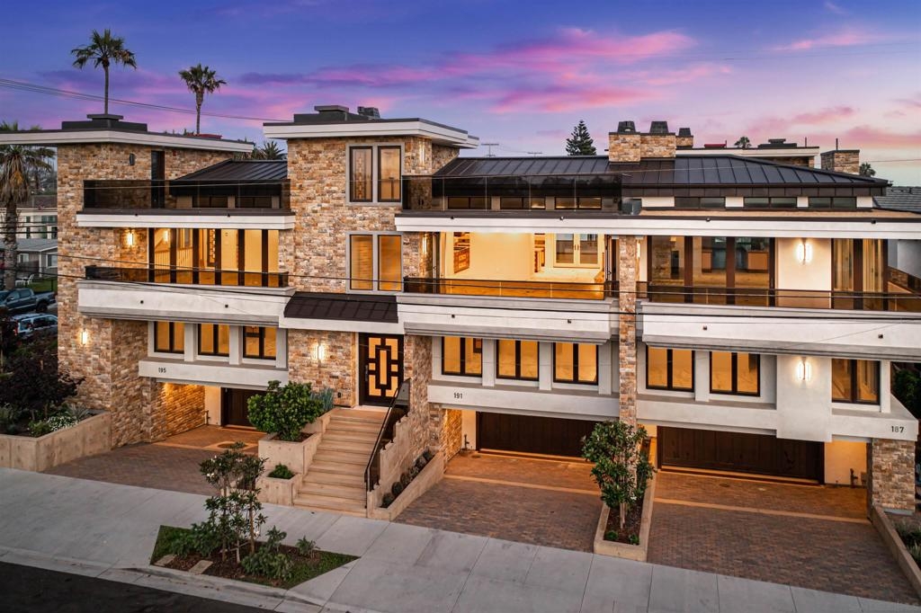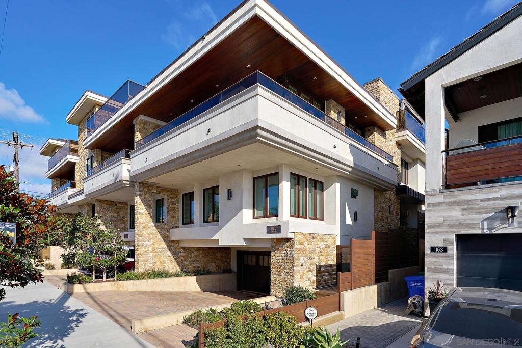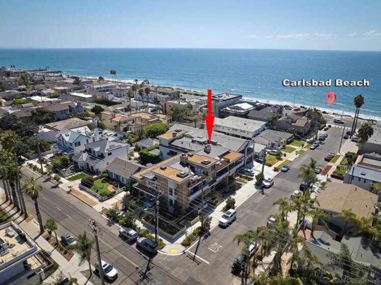 The One and Only. Architectural Sea Side Masterpiece Frank Lloyd Wright inspired residence built to the highest bar of finishes and quality. Set within steps of the vibrant Carlsbad Village and just 150 yards from one of Southern California's finest beaches, this iconic ocean view estate offers the ultimate in luxury living. Featuring four bedrooms, including four en-suite bedrooms and two formal powder rooms, this architectural masterpiece combines modern elegance with timeless design, boasting panoramic ocean views from nearly every room. Upon entering, you're greeted by soaring ceilings and floor-to-ceiling windows throughout that frame stunning coastal vistas. Every detail of this home reflects exquisite craftsmanship, with custom Birdseye maple and walnut cabinetry and millwork. The expansive family room flows effortlessly into the gourmet kitchen, which is adorned with bespoke cabinetry and state-of-the-art appliances, making it a chef’s dream and an entertainer’s delight, Cove dishwashers, Subzero refrigerator, Wolf gas range, custom island and eat in kitchen with walk in pantry. The primary suite serves as a serene retreat with its own ocean views, while the spa-like en-suite bathroom features a freestanding soaking tub, walk-in rain shower, heated Italian porcelain tile floors and dual walk-in closets, all beautifully framed by custom wood finishes. There are no common walls with the adjoining neighbors, all walls finished separately. A private Savaria elevator allowing entry to all floors of the home, offers seamless access from the private 2 car garage level featuring elaborate built-ins, an office suite, and custom Mahogany garage doors ensuring both convenience and luxury. A fully wired smart home featuring CAT6, custom security system, built in speaker system and full rack IT closet, and 9 mounted televisions Each of the additional three en-suite bedrooms is designed with privacy and elegance in mind, offering luxurious bathrooms and custom millwork. The outdoor living spaces are as remarkable as the interior, with an expansive terrace, all designed to take full advantage of the stunning ocean views and provide elegant entertaining areas. Finish and details such as cast in place concrete, imported real Italian stone façade, high quality materials thoughtfully crafted to resist the elements. An exceptional private outdoor grilling area, TV, and custom outdoor stone fireplace for intimate gatherings. A rare opportunity to own an architectural marvel in one of Southern California’s most coveted coastal enclaves.