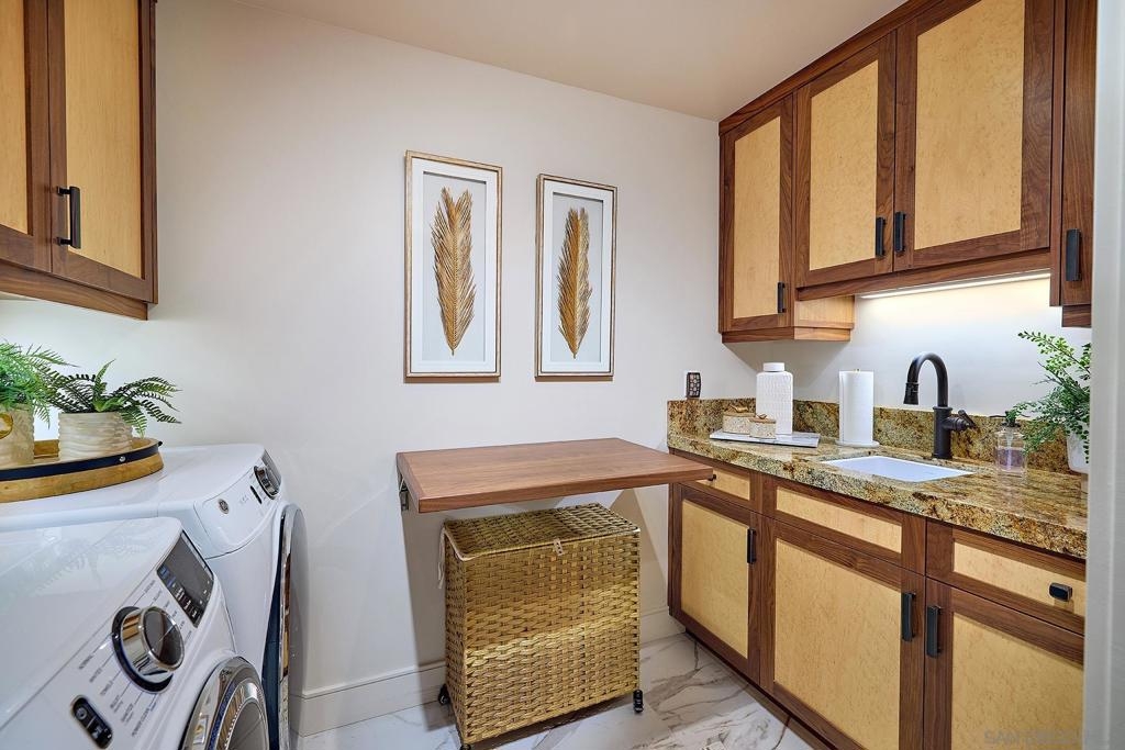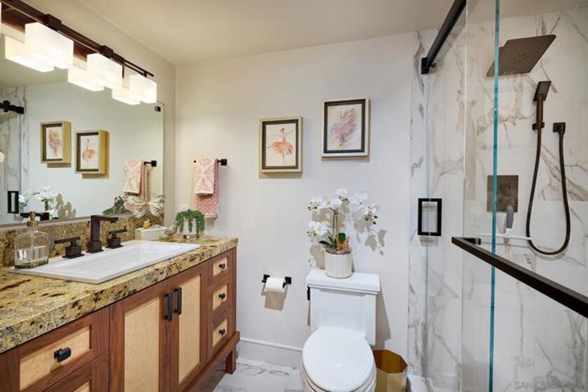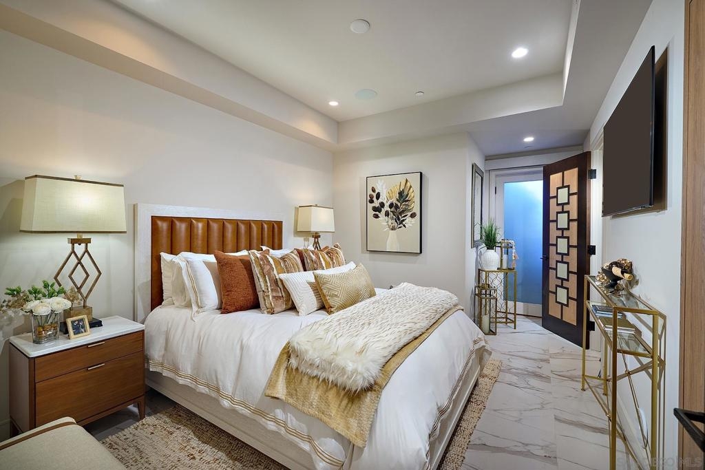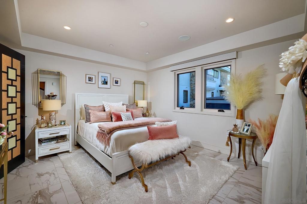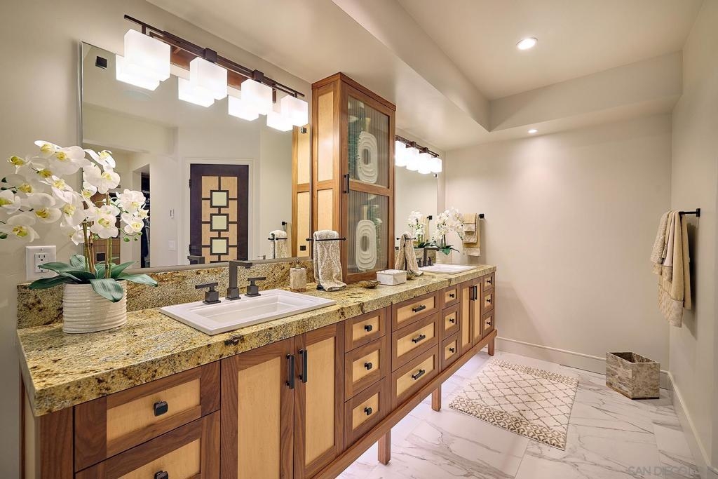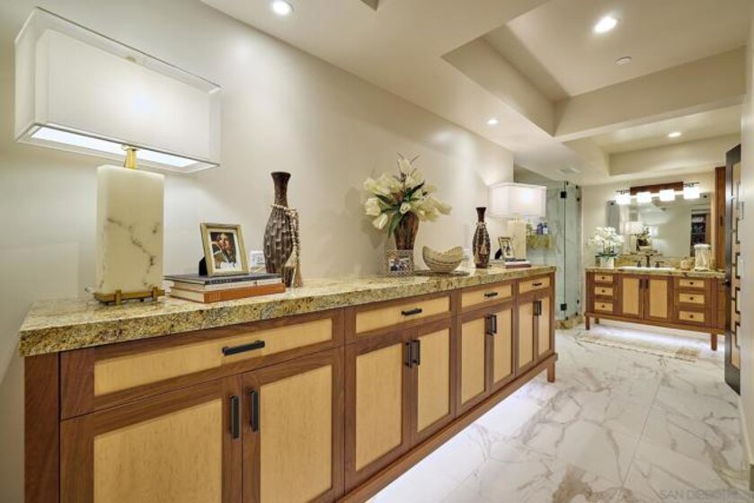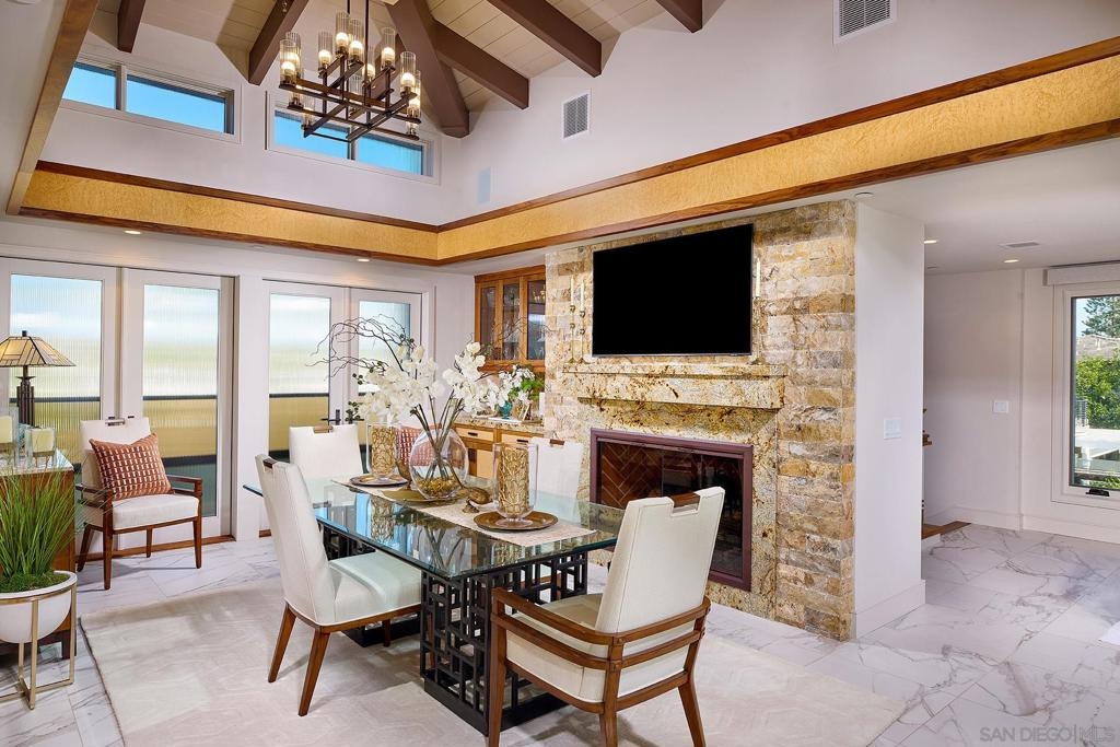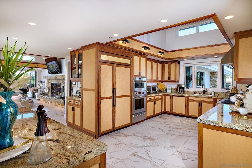 The One and Only. Architectural Sea Side Masterpiece Frank Lloyd Wright inspired residence built to the highest bar of finishes and quality. Set within steps of the vibrant Carlsbad Village and just 150 yards from one of Southern California's finest beaches, this iconic ocean view estate offers the ultimate in luxury living. Featuring four bedrooms, including four en-suite bedrooms and two formal powder rooms, this architectural masterpiece combines modern elegance with timeless design, boasting panoramic ocean views from nearly every room. Upon entering, you're greeted by soaring ceilings and floor-to-ceiling windows throughout that frame stunning coastal vistas. Every detail of this home reflects exquisite craftsmanship, with custom Birdseye maple and walnut cabinetry and millwork. The expansive family room flows effortlessly into the gourmet kitchen, which is adorned with bespoke cabinetry and state-of-the-art appliances, making it a chef’s dream and an entertainer’s delight, Cove dishwashers, Subzero refrigerator, Wolf gas range, custom island and eat in kitchen with walk in pantry. The primary suite serves as a serene retreat with its own ocean views, while the spa-like en-suite bathroom features a freestanding soaking tub, walk-in rain shower, heated Italian porcelain tile floors and dual walk-in closets, all beautifully framed by custom wood finishes. There are no common walls with the adjoining neighbors, all walls finished separately. A private Savaria elevator allowing entry to all floors of the home, offers seamless access from the private 2 car garage level featuring elaborate built-ins, an office suite, and custom Mahogany garage doors ensuring both convenience and luxury. A fully wired smart home featuring CAT6, custom security system, built in speaker system and full rack IT closet, and 9 mounted televisions Each of the additional three en-suite bedrooms is designed with privacy and elegance in mind, offering luxurious bathrooms and custom millwork. The outdoor living spaces are as remarkable as the interior, with an expansive terrace, all designed to take full advantage of the stunning ocean views and provide elegant entertaining areas. Finish and details such as cast in place concrete, imported real Italian stone façade, high quality materials thoughtfully crafted to resist the elements. An exceptional private outdoor grilling area, TV, and custom outdoor stone fireplace for intimate gatherings. A rare opportunity to own an architectural marvel in one of Southern California’s most coveted coastal enclaves.