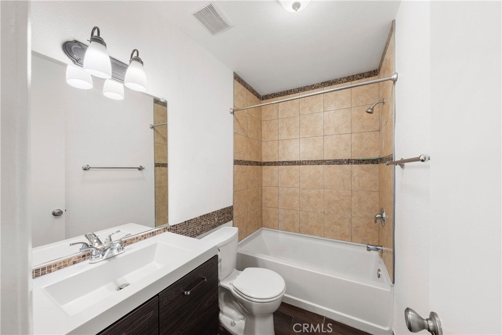 This is an amazing opportunity to own this stunning home within 3 miles from the ocean. This home is turnkey featuring an interior entry, beautiful flooring, great room with a large, fenced patio for entertaining. The kitchen features stainless steel dual sink, stainless steel refrigerator, dishwasher, range, loads of cabinetry with hardware, and features an additional eating area. The owner’s suite is huge with amazing views, large closet with dual side organizers. The en-suite bathroom has been fully upgraded, modern fixtures added and is light and bright. The secondary bedroom is spacious with a slider onto the balcony, and closet featuring mirrored doors and upgraded hall bathroom. Two covered parking spaces! This location is central to all major shopping, freeways and approx. 10 minutes from the beach. Modern luxury and comfort await as this unit will go fast as the gated community also offers tennis courts, pool, spa and so much more.