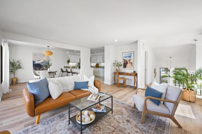 Welcome to this stunning home ideally located in the highly sought-after La Costa neighborhood of Carlsbad, CA. This 2-bedroom, 2.5-bathroom retreat offers a relaxed coastal lifestyle with modern amenities and convenient access to all that Carlsbad has to offer. Step inside to discover 1504 square feet of living space filled with natural sunlight, featuring new flooring and fresh paint throughout. The main level boasts a well-appointed kitchen with stainless steel appliances, granite counters, and an eat-at bar, creating an ideal space for relaxing and entertaining while enjoying the outdoor views and coastal breezes.The primary bedroom, located on the lower level, includes an en suite bathroom with dual vanities, a soaking tub, a walk-in closet, and a cozy fireplace, providing a private and tranquil retreat. Step outside to the private patio, perfect for enjoying the beautiful Carlsbad weather year-round and coastal breezes. Upstairs, the main living area opens up to a balcony with gorgeous views, including the nearby resort golf course, offering a serene backdrop for relaxation. Recent updates include new luxury vinyl plank flooring and carpet, a custom stair rail, fireplace, new bathroom vanities, fresh paint, and a new furnace, enhancing the modern appeal of the home. The attached 2-car garage and guest parking ensure convenience for you and your visitors. Plus, the community features a pool, adding to the appeal of this charming community. Located just minutes from the sandy shores of Carlsbad's beaches and close to shopping, restaurants, and more, this home offers the best of coastal living with urban conveniences. Don't miss out on this opportunity to live the modern and coastal lifestyle in La Costa Carlsbad.