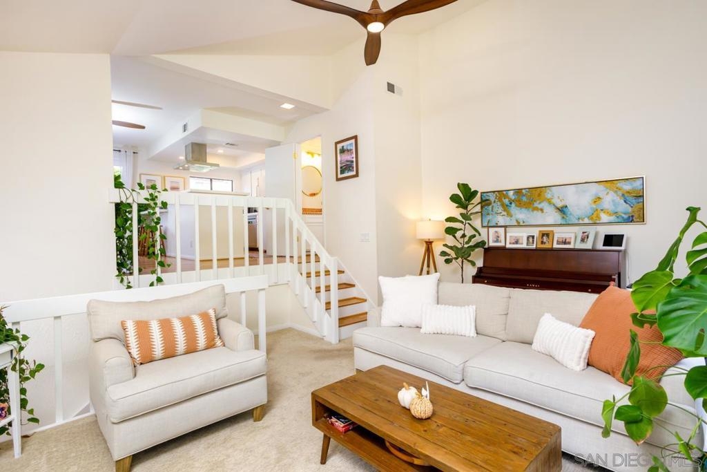 Discover this stunning 2 bed, 2.5 bath end-unit townhome in the highly sought-after La Costa community. Step inside to soaring vaulted ceilings, natural oak hardwood floors, updated lighting, and custom finishes throughout. The open-concept main level features a bright and airy living room with arched windows and French doors that flow seamlessly into the dining area and kitchen—perfect for entertaining or relaxing. Enjoy three private patios for indoor-outdoor living at its finest. The attached 2-car garage offers ample storage, finished epoxy flooring, and a Tesla charger. Ideally located near beautiful beaches, premier shopping, fine dining, golf, and top-rated schools—this La Costa gem truly has it all. This home offers the best of both worlds—it lives like a single-family residence while providing the convenience and amenities of a boutique community. The open-concept kitchen features stainless steel appliances, an eat-at bar, and hardwood floors, flowing seamlessly to a private patio ideal for barbecues and entertaining. Upstairs, the primary suite includes mirrored closets and dual vanity, and a large soaker tub for ultimate relaxation. The entry-level bedroom with an en-suite bath offers an ideal setup for guests, a home office, or a private retreat.