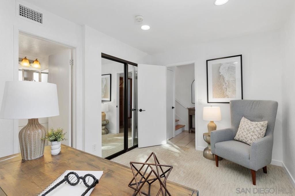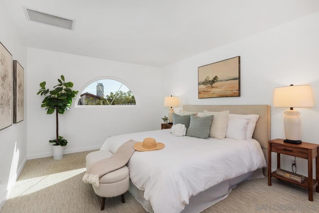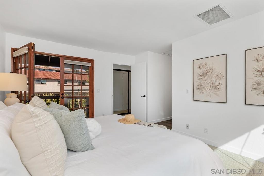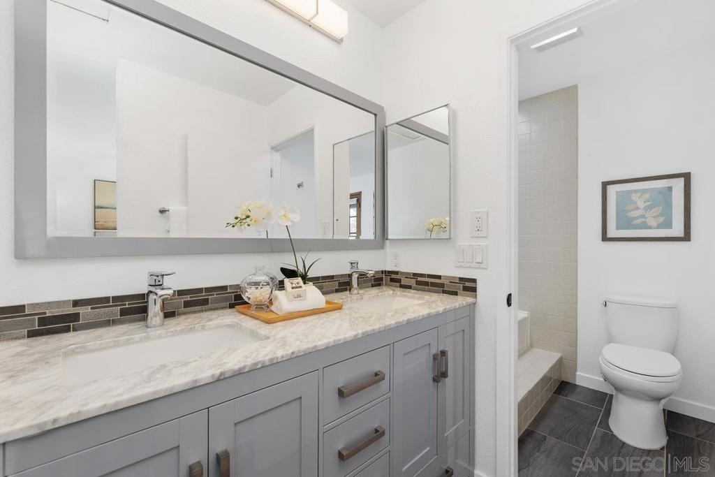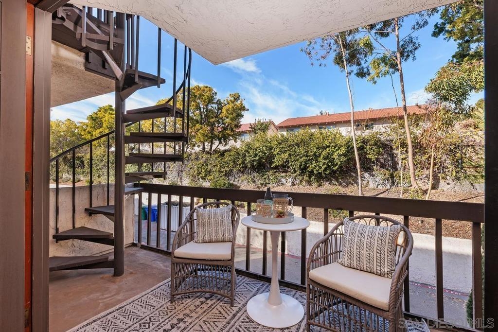 Welcome to this stunning, move-in ready 2 bedroom 2.5 bath townhome in picturesque La Costa of Carlsbad featuring an attached garage, maple engineered hardwood floors, and abundant natural light throughout. Ideally located minutes from the beach, freeway, La Costa Resort, Rancho Carrillo hiking trails, Alga Norte dog park and aquatics center—everything is literally at your fingertips. The vaulted ceilings and large windows add a sense of grandeur, while the electric car charging station offers modern convenience. The 2020 upgraded kitchen boasts sleek black quartz counters, white cabinets, and stainless steel appliances perfect for culinary enthusiasts. Both bedrooms have their own private level and ensuite bathroom which allows the ultimate privacy among dwellers. The property also includes a new roof and freshly painted interior. Relax on any of the three private balconies and make use of the additional bar area, especially while entertaining guests. Enjoy the perfect climate all year long between the whole house fan system and cozy fireplace. The double paned windows also further enhance the quiet ambience and temperate climate of the property. Additionally, all bathroom vanities have been upgraded as well as installation of California closets throughout. Don't miss the opportunity to make this exceptional home yours!