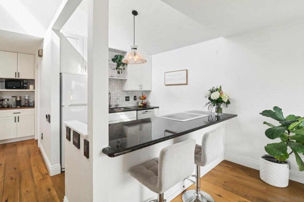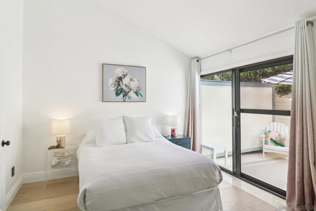 Step into style, comfort, and functionality in this stunning townhome-style retreat nestled in the heart of La Costa! This light-filled two-story haven features a vaulted ceilings, an inviting open-concept layout, hardwood and marble flooring throughout, and multiple outdoor spaces to soak in the coastal air. The expansive primary bedroom on the first floor offers a private patio, perfect for morning coffee or unwinding at the end of the day. Upstairs, the bright and airy living space boasts a cozy fireplace, an adjacent dining area, and seamless indoor-outdoor flow to another private out door space- balcony. The updated kitchen is designed for both aesthetics and efficiency, featuring granite counter tops, backsplash, updated kitchen utilities, newly added dishwasher, and a built-in coffee bar just around the corner to start your day. With two full bathrooms (one on each level), an in-unit laundry closet, ample storage, and a versatile office nook on the main level, this home effortlessly blends convenience and charm. Whether you're working from home, hosting guests, or simply relaxing in your sunlit sanctuary, this space adapts to your lifestyle. Located minutes from top-rated schools, shopping, dining, and world-class golf courses, this home presents an unbeatable opportunity to experience the best of coastal living.