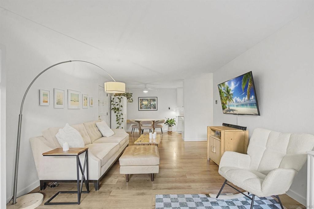Set within a gated community featuring a pool and spa, tennis courts, and clubhouse, this home delivers the “lock-and-leave” lifestyle with real amenities. Enjoy the convenience of walking to nearby shopping, restaurants, and local hiking trails—plus you’re just minutes from the beaches and the energy of Carlsbad Village. Fresh, modern retreat where the interior has been completely transformed. Modern kitchen shines with crisp shaker cabinetry (soft-close drawers and doors), quartz countertops, classic subway-tile backsplash, stainless appliances. And contemporary hardware that ties it all together. The light-filled living room and bedroom both open to an oversized patio, creating an easy indoor-outdoor flow that feels bigger than expected. You’ll also love the practical upgrades: indoor laundry hookups, two closets in the bedroom, an additional storage unit, and two covered parking spaces—a rare bonus in coastal North County.