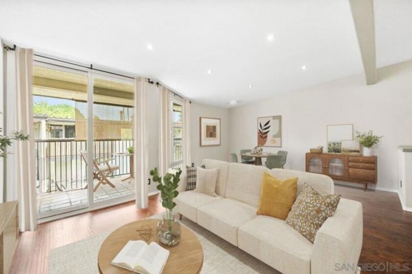 VIEWS!!!! Located in La Costa, Carlsbad; this VERY large 2b/2b, split-level townhome is a gem. Awesome canyon VIEWS out the main living area and downstairs bedroom!! Floor to ceiling windows, 3” of concrete below the flooring upstairs to prevent from footstep noise below (brilliant!), 2 generously sized bedrooms, huge soaking tub, walk-in closet, extra storage in each room, updated kitchen, updated 2nd bath, updated floors, and more! 2-car garage (RARE) with full size W/D and extra storage. VA loan approved, too! 2 balconies bring in the CA sunshine allllll day from east to west and on the other side of the home, soak in the northern nature views while sitting on your zen-like private porch (say hi to the hummingbirds!). The community pool/spa is just around the corner (but not too close!) and there are plenty of paths to take long walks. This home is just a few minutes away from the new restaurants/shops by Equinox and just 4.5 miles to the sandy beaches. Great location!! Virtually staged.