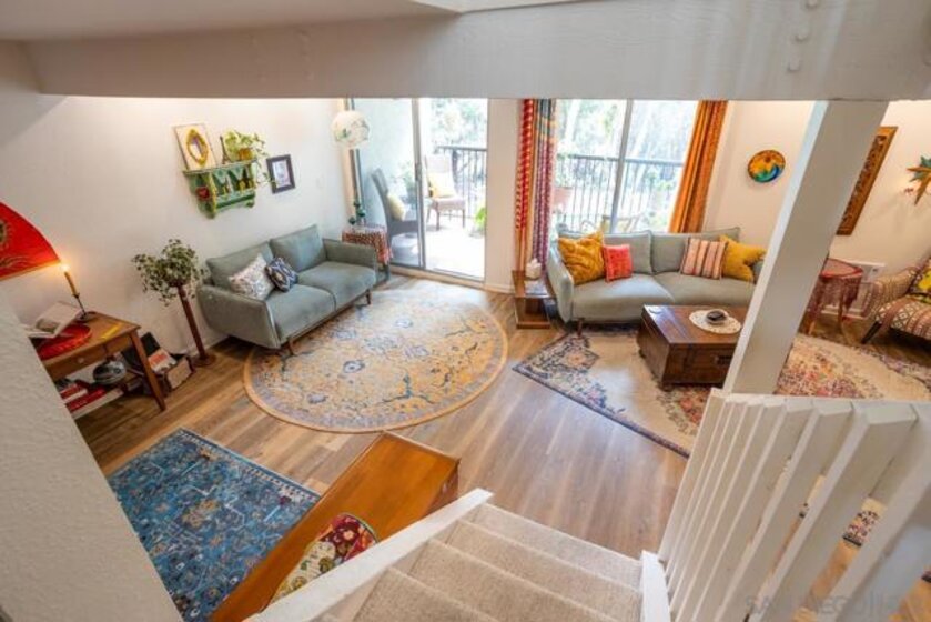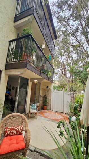 Welcome home to your La Costa Hideaway, featuring over 1,750 sq ft of tree-lined serenity. Enjoy a spacious and private tri-level retreat featuring floor-to-ceiling views of lush greenery, patios on each level, and a fully fenced yard on the ground floor. The open-concept layout is sure to impress, complemented by warm wood cabinetry, an eat-at kitchen bar, and a flexible space perfect for a pantry or craft room. The home also boasts recessed lighting and luxurious plank floors throughout. This blend of indoor/outdoor living with a boho 70’s charm and thoughtful modern updates throughout make this the place to call home. Not to mention it is quiet and inviting—your own hidden retreat in the heart of La Costa. Seller also have leases solar but contract can be cancelled or assigned for a low cost of $160 per month.
