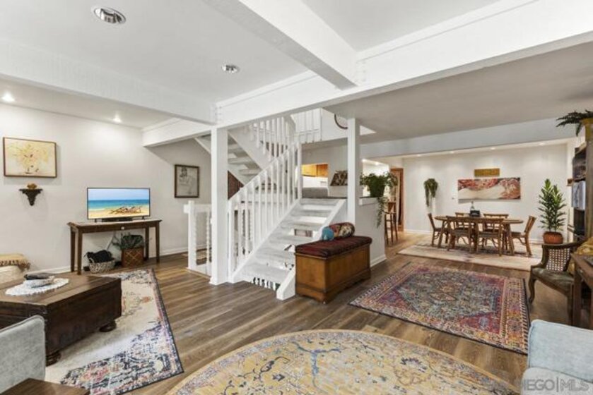 Welcome home to your La Costa Hideaway, featuring over 1,750 sq ft of tree-lined serenity. Enjoy a spacious and private tri-level retreat featuring floor-to-ceiling views of lush greenery, patios on each level, and a fully fenced yard on the ground floor. The open-concept layout is sure to impress, complemented by warm wood cabinetry, an eat-at kitchen bar, and a flexible space perfect for a pantry or craft room. The home also boasts recessed lighting and luxurious plank floors throughout. This blend of indoor/outdoor living with a boho 70’s charm and thoughtful modern updates throughout make this the place to call home. Not to mention it is quiet and inviting—your own hidden retreat in the heart of La Costa.