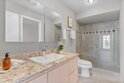 Welcome to resort-style living in the heart of La Costa! This beautifully updated single-level residence offers 1,783 sq. ft. of open-concept living, designed for comfort, convenience, and effortless entertaining. Enjoy elevator access from the secure entry directly into one of the most desirable floorplans in the community. Inside, natural light pours into the expansive living and dining area, complete with a cozy gas fireplace and direct access to one of three private balconies — perfect for morning coffee or evening sunsets. The modern kitchen features quality appliances, abundant cabinetry, and a dedicated laundry room just steps away. Two primary suites on opposite ends of the home provide ideal privacy, each with a generous en-suite bathroom, large closets, and a balcony retreat. Storage is never a concern with ample closets and additional private storage in the garage. This boutique community offers two assigned parking spaces in a gated garage and access to a massive rooftop deck overlooking the lush Omni La Costa Resort golf course — a standout feature with unforgettable views. Additional amenities include a sparkling community pool and spa. Perfectly located minutes from Carlsbad’s beaches, I-5 access, and the trendy Beacon La Costa shopping and dining center, plus nearby wellness offerings, cafés, and everyday conveniences. Whether you seek a quiet coastal retreat or a stunning place to entertain, this home delivers the best of La Costa living in a rare single-story layout. Welcome home!