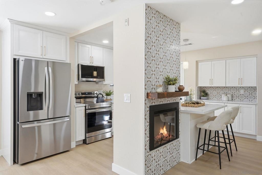 Welcome to your dream home, surrounded by the Omni/La Costa golf course ambience with tennis courts & a relaxing pool and jacuzzi. This gorgeous fully renovated corner unit is completely remodeled with high-end finishes, a chef's kitchen with all new appliance and a wine bar and cooler. This home has an open and bright floor plan where you can unwind with a cozy fireplace. The home hosts a ton of closet and storage space, including a large size walk-in closet, along with a laundry closet with a brand-new state of the art all-in-one washer and dryer. This home has a common gated garage with 1 designated parking space, with plenty of guest parking. Enjoy your great view from your balcony, overlooking the pool and spa. Welcome to your dream home, surrounded by the Omni/La Costa golf course ambience with tennis courts & a relaxing pool and jacuzzi. This gorgeous fully renovated corner unit is completely remodeled with high-end finishes, a chef's kitchen with all new appliance and a wine bar and cooler. This home has an open and bright floor plan where you can unwind with a cozy fireplace. The home hosts a ton of closet and storage space, including a large size walk-in closet, along with a laundry closet with a brand-new state of the art all-in-one washer and dryer. This home has a common gated garage with 1 designated parking space, with plenty of guest parking. Enjoy your great view from your balcony, overlooking the pool and spa.