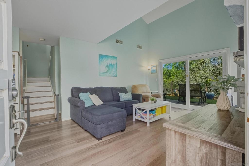 Welcome to your perfect starter or retirement gem of a home in Calavera Hills. This beauty has been extensively remodeled and sits on a premium canyon lot! This 3-bedroom home in The Crest has two bedrooms on primary floor, offers privacy, views, and true indoor-outdoor living with new pavers and turf. Updates include a fully remodeled kitchen with farmhouse sink and new appliances, luxury vinyl plank flooring, custom Italian marble tile, stone-topped vanities, newer windows and slider, and new heater/AC. The oversized primary suite features a custom barn door and built-in closet system. Enjoy the remodeled laundry area with new washer and dryer, large outdoor storage PLUS expanded and finished attic for even more storage. With a low HOA and a prime location walkable to Hope Elementary, Calavera Park, and local hiking trails, this home has it all.