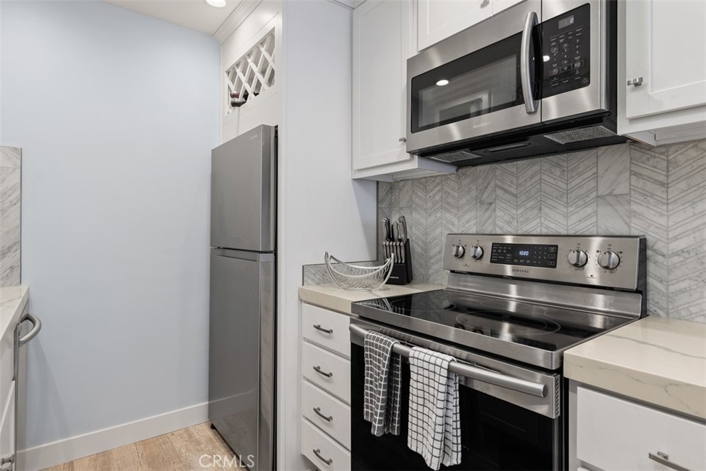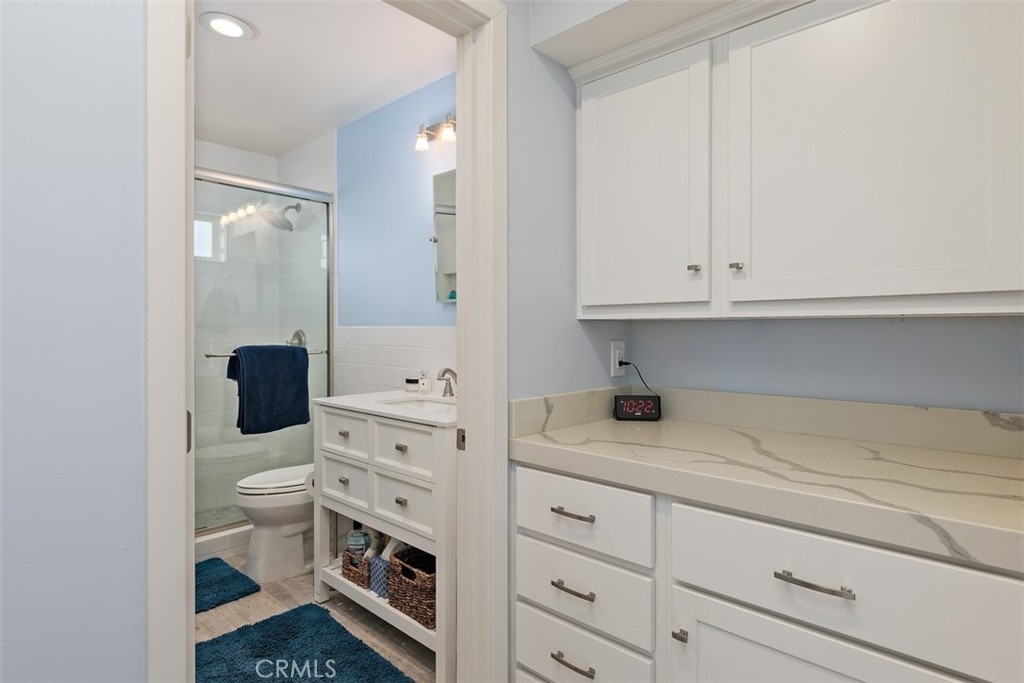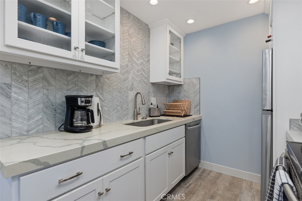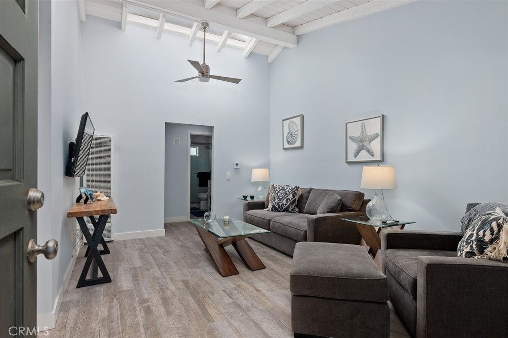 Rarely do condos at the Monterey-Gage Community come on the market. This totally renovated, model-perfect condo is in the Village and only a three-minute walk to the beach! Location! Location! Walk not only to the beach, but to restaurants, shops, the train station, and a variety of services. This turn-key condo offers you the most affordable, beach lifestyle in Carlsbad. Park your car and take advantage of everything the Village/Beach has to offer from outstanding walkable beaches to close-by family activities including Legoland, Sea World, and the famous San Diego Zoo. Plus you will enjoy an abundance of great eateries and shops you will only find in the Village. Also as an owner at the Monterey-Gage Community, you will enjoy the charming common grounds AND you will have use of the historic Luther Gage House that is located on the property. Built in 1922, this quaint turn-of-the century home is part of your common HOA facilities. (Feel free to look up Luther Gage as he was a VIP in the development of Carlsbad and its flowers!) As an owner, you are allowed to use the Gage House for family and friends at a very affordable charge. So, you will have access to a four-bedroom home right out your door of your condo! A most unique perk! This lovely condo also comes with designated covered parking and a storage area. And now to the details of this picture-perfect condo. The owner has totally redone the entire interior including a total redo on the kitchen and bathroom. The kitchen has all new cabinets and appliances, including a garage disposal, a stove, microwave, and a dishwasher. The bathroom boasts an all-new shower, cabinets mirror, and countertops. And the entire condo has all new interior painting, ceiling fans, flooring, plantation shutters, and a portable air conditioner that remains with the property. And you will have your own covered parking spot located close to the condo. And if all of this is not enough, this condo offers the owner a financial perk if desired. This condo is located in the sought-after Coastal Zone, which means short-term rentals are allowed. Nice to have a home at the beach that helps pay for itself!