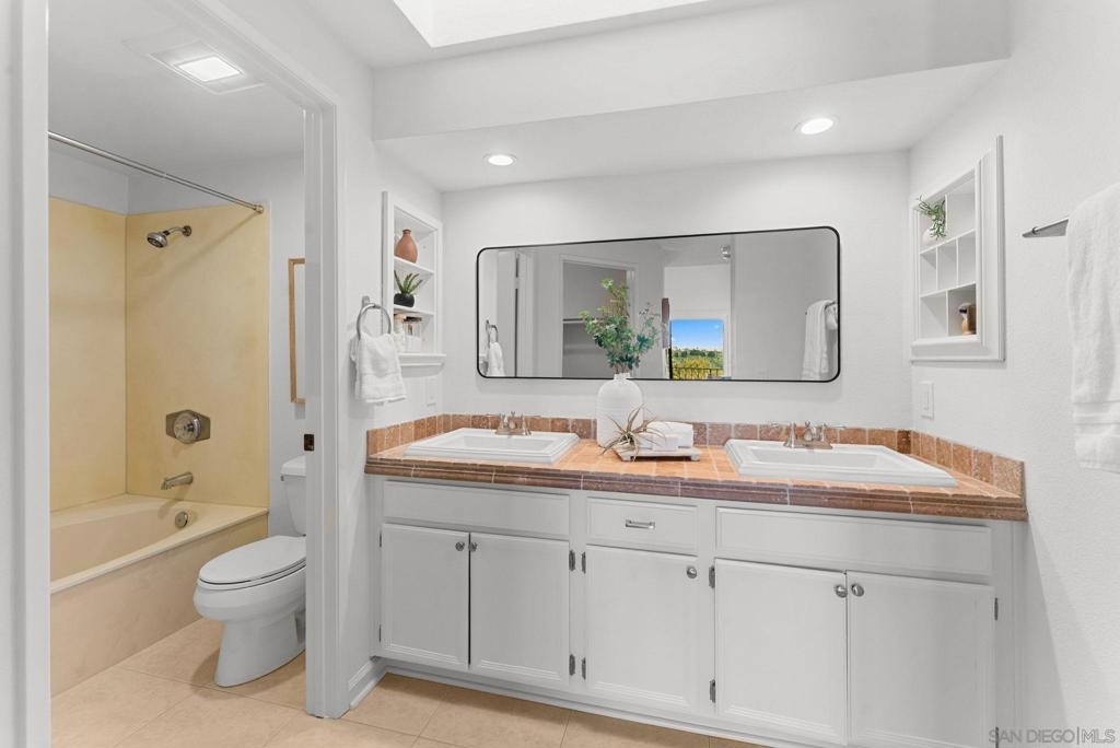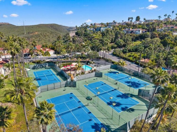 Welcome to this thoughtfully updated and well-maintained 2 bed / 2 bath condo in the highly sought-after Sea Point Tennis Club community in the heart of La Costa. Offering 1,158 sq ft of well-designed living space, this home blends comfort, functionality, and coastal charm. The open-concept floor plan features wood laminate and tile flooring, vaulted ceilings, a cozy fireplace, and southwestern exposure that fills the space with natural light. The kitchen flows seamlessly into the dining and living areas, ideal for everyday living and entertaining. The spacious primary suite includes a walk-in closet and en-suite bath with dual vanities and a soaking tub. The secondary bedroom offers flexibility for guests or a home office. Enjoy ocean views and coastal breezes from your private balcony. Recent upgrades include new appliances, dual-pane windows and sliders, and newer heating and A/C. Additional highlights include in-unit laundry, assigned parking, and a private one-car garage. Sea Point Tennis Club offers resort-style amenities including a pool, spa, and tennis courts. Ideally located just minutes to Carlsbad beaches, shopping, dining, and top-rated schools — don’t miss this opportunity to enjoy the best of North County coastal living.