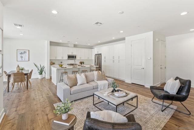 This corner-lot twin home enjoys open park views and the privacy of having only one direct neighbor. Built in 2020 within the sought-after Acacia at the Preserve community, it features a bright two-story design with 3 bedrooms plus a loft, an attached 2-car garage, and a private fenced yard with a spacious patio and upper-level deck for outdoor living. Highlights include a tankless water heater, A/C, upgraded electrical features, and a stylish kitchen with quartz countertops, a center island, designer backsplash, stainless steel appliances, and generous storage. Convenient guest parking is located right beside the home. Acacia residents enjoy access to a resort-style recreation center with a fitness facility, beach-entry pool, spa, BBQ area, playground, and outdoor fireplace. The Preserve connects directly to miles of scenic trails within the Carlsbad City system bordering the Buena Vista Creek Ecological Reserve, and the location offers easy access to shopping, dining, major freeways, and award-winning Carlsbad Unified schools.