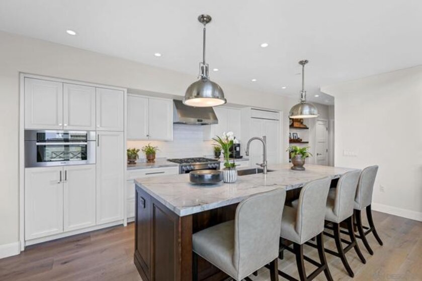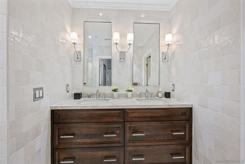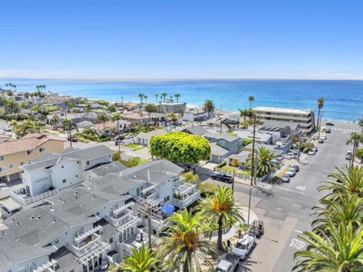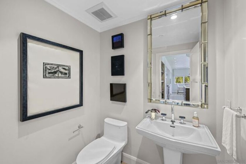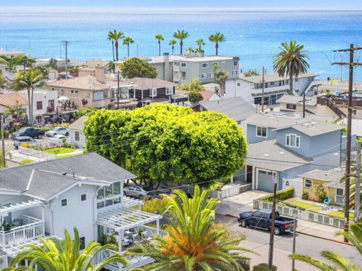 On the corner of Garfield & Walnut...Discover this exquisite, high-end luxury corner unit townhome, just 1 block from picturesque beaches of Carlsbad, offering stunning ocean views! This coastal gem has been meticulously remodeled to appeal to those w the most refined tastes. Lightly used & in pristine, turnkey condition, this corner unit boasts the largest footprint in the complex, featuring spacious outdoor area w wraparound patio & a 2nd-floor deck, perfect for embracing the quintessential Southern California lifestyle.The 1st floor opens to a lush patio & includes a versatile den/office & a 2ndary BD. You'll also find a full BA & laundry area on this level. Ascend to the 2nd floor to be captivated by the floor-to-ceiling windows & bifold doors that invite ocean breezes, leading to a wraparound deck w ocean views.Kitchen is a chef’s dream, featuring raised ceilings, spacious center island, specially designed reset cabinetry, Miele s/s appliances: gas stove, dishwasher & steam oven; and a side-by-side Sub-Zero refrig-all of which are still under warranty.Experience the open-concept living area w soaring ceilings, recessed lighting, ceiling fans, custom window coverings, & energy-efficient windows. The bi-fold doors seamlessly blend indoor & outdoor spaces, perfect for al fresco dining. The 2nd floor also hosts an elegant & secluded primary suite w a customized walk-in closet, dual vanities, a spacious shower & separate cast iron tub. An impressive upstairs loft bedroom w an ensuite BA & walk-in closet offer add'l ocean views.2-car garage+2-car driveway...(cont.supplement) On the corner of Garfield & Walnut...Discover this exquisite, high-end luxury corner unit townhome, just one block from the picturesque beaches of Carlsbad, offering stunning ocean views! This coastal gem has been meticulously remodeled to appeal to those with the most refined tastes. Lightly used and in pristine, turnkey condition, this corner unit boasts the largest footprint in the complex, featuring a spacious outdoor area with a wraparound patio and a second-floor deck, perfect for embracing the quintessential Southern California lifestyle. The first floor opens to a lush patio and includes a versatile den/office and a secondary bedroom. You'll also find a full bath and laundry area on this level. Ascend to the second floor to be captivated by the floor-to-ceiling windows and bifold doors that invite ocean breezes, leading to a wraparound deck with breathtaking ocean views. The kitchen is a chef’s dream, featuring raised ceilings, a spacious center island, specially designed reset cabinetry, Miele stainless steel appliances: gas stove, dishwasher and steam oven; and a side-by-side Sub-Zero refrigerator -all of which are still under warranty. Experience the open-concept living area with soaring ceilings, LED recessed lighting, ceiling fans, custom window coverings, and energy-efficient dual-glazed windows. The bi-fold doors seamlessly blend indoor and outdoor spaces, perfect for al fresco dining. The second floor also hosts an elegant and secluded primary suite with a customized walk-in closet, dual vanities, a spacious shower, and a separate cast iron tub. An impressive upstairs loft bedroom with an ensuite bath and walk-in closet offer additional ocean views. This home includes an attached 2-car garage with a driveway accommodating two additional vehicles—a significant advantage for beach living. Enjoy wood flooring throughout, custom stairways, a complete "Life Source" water purification system, along with a tankless water heater and newer central A/C. No detail has been overlooked on this property. Comprising three bedrooms plus a den/office that could serve as a fourth bedroom, this townhome is conveniently located near Carlsbad Village’s vibrant shops, Michelin-starred restaurants, farmers market, and train station, providing unparalleled privacy alongside luxury amenities. Everything in this property is custom & exquisitely done! You will be ...