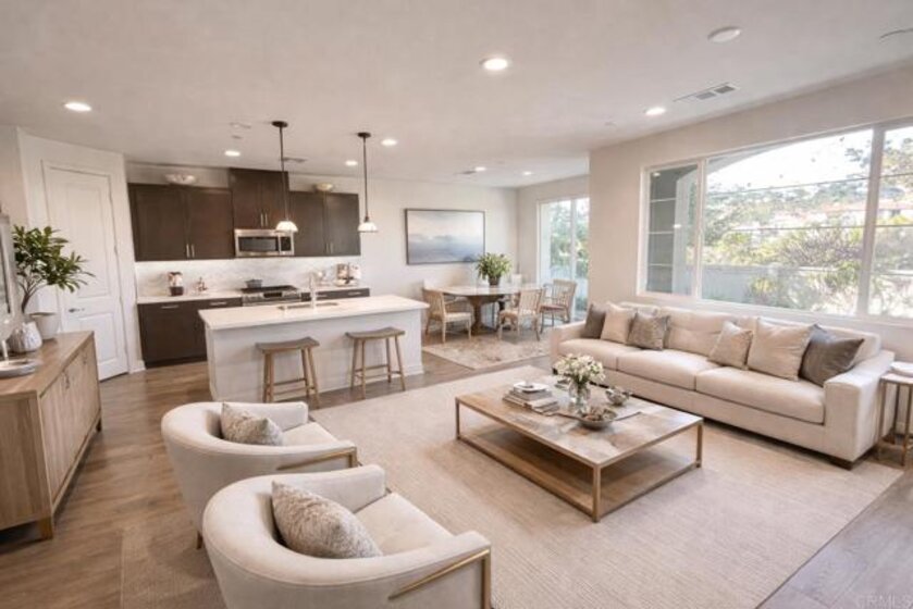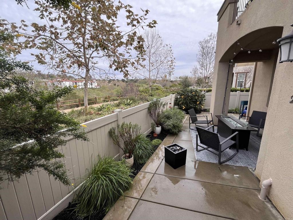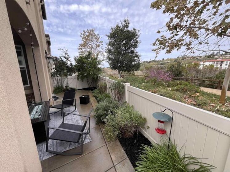 Beautiful end-unit townhome with unobstructed preserve views in the highly desirable Agave at The Preserve community in Carlsbad. This bright and private 3BR/2.5BA two-story home features an open floor plan, abundant natural light, and a rare setting backing directly to preserved open space. The interior showcases 9' ceilings, quartz slab countertops, composite flooring, plantation shutters upstairs, and a modern gourmet kitchen with European-style gray cabinetry, Samsung stainless appliances, recessed LED lighting, and sleek finishes throughout. The spacious primary suite includes a walk-in closet, dual sinks, cultured marble counters, and Andersen French doors opening to a private terrace. Enjoy seamless indoor-outdoor living with a custom poured-concrete patio and low-maintenance yard featuring a fruiting Meyer lemon tree, all overlooking protected open space and nearby trails. The attached 2-car garage includes insulated doors and LiftMaster opener. The home is designed for modern, energy-efficient living with fiber-optic readiness, network/data wiring, Low-E dual-glazed windows, tankless water heater, Energy Star appliances, and programmable thermostat. Residents of The Preserve enjoy resort-style amenities including pool, spa, fitness center, parks, playgrounds, barbecue areas, and extensive trail connections. Flexible purchase options available. The property also offers a rare 3% assumable mortgage (approx. $520K balance with ~22 years remaining), providing a meaningful affordability advantage compared with current market rates. Buyers may also pursue conventional financing. Prime location with convenient access to Hwy 78, I-5, Quarry Creek shopping and dining, Carlsbad Village, and some of Southern California’s best beaches, plus top-rated Carlsbad Unified schools including Hope Elementary, Calavera Hills Middle, and Sage Creek High. Contact listing agent for details on purchase options and loan assumption eligibility.
