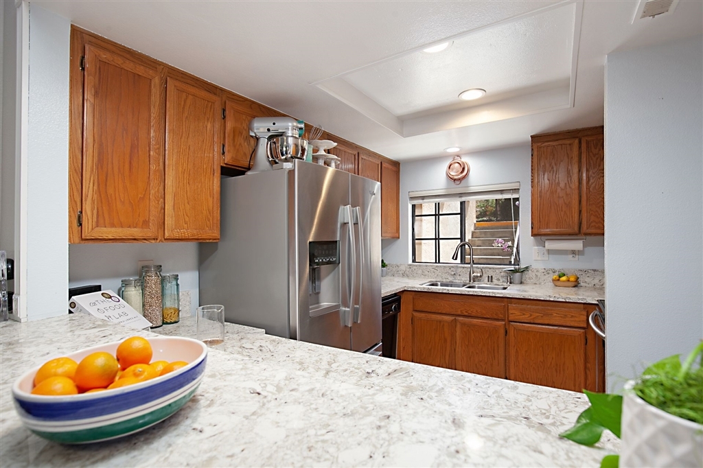 Location, Location! Charming 3BR, 2Bth, 1362 SF end unit in The Villas at Calavera Hills! Two patios to enjoy the lush parklike westerly views overlooking open space and pool! Upgrades include remodeled kitchen with SS appliances, quartz counters & tile floors, quality wood-look laminate flooring throughout, custom Fireplace mantle in the LR! Full sized "in home" laundry! Community pool! One car garage with private storage area, one assigned parking space. Convenient location near schools, parks, & beach! Neighborhoods: The Villas Equipment: Range/Oven Other Fees: 0 Sewer: Sewer Connected Topography: LL