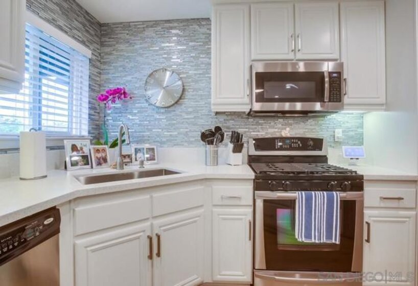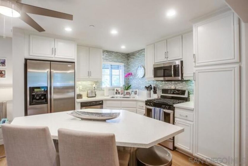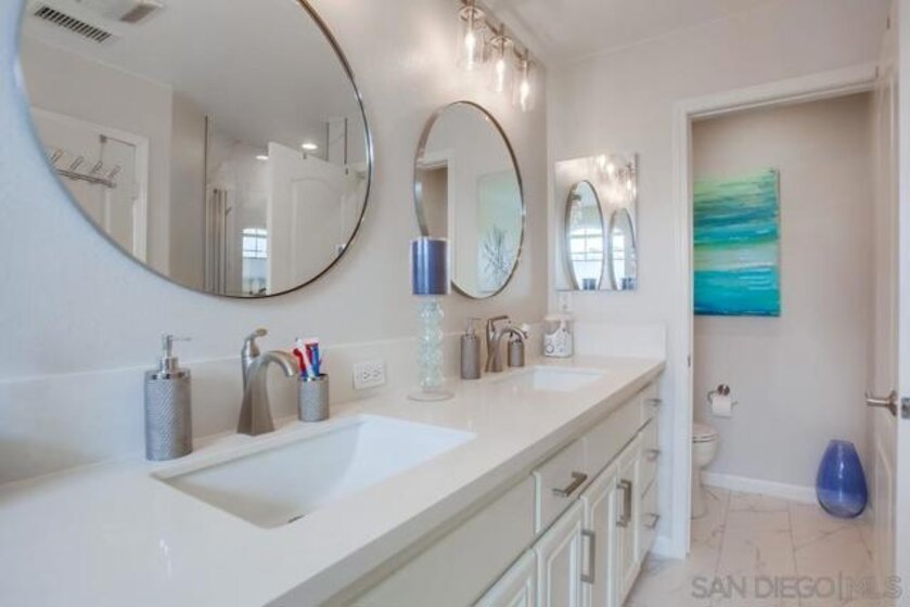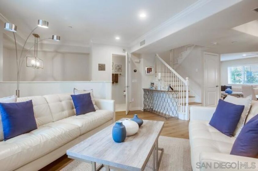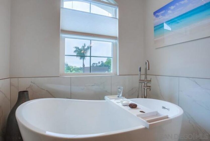 **Location! Location! Location!** Welcome to your coastal retreat at 4051 Aidan Circle in Carlsbad, just 1 mile from the beach! This beautifully renovated townhome offers 4 bedrooms, 2.5 baths, and 1,842 sq ft of stylish living space. Perfectly situated near Tamarack State Beach and a short bike ride to Carlsbad Village, it’s ideal for water sports enthusiasts, outdoor lovers, and shopaholics. As you enter, you’ll be greeted by a lovely front patio with lagoon views, perfect for morning coffee or evening sunsets. Inside, elegant LVT flooring flows throughout. The open-concept layout features a cozy family room with a gas fireplace and a dining area, ideal for entertaining. The kitchen showcases a large island with quartz countertops, stainless steel appliances, and ample storage with pull-out shelving. Off the garage entry, a versatile bonus room awaits, perfect for a home office or extra bedroom.Upstairs, the tranquil master suite boasts a walk-in closet and an ensuite with a luxurious freestanding bathtub, porcelain tile walk-in shower, dual sink vanity, and custom light fixtures. Enjoy picturesque lagoon and ocean views from your private sanctuary. Two additional bedrooms feature spacious closets and ceiling fans for added comfort. The community offers a thoughtfully designed layout with ample parking and easy access to a clubhouse, large pool, spa, and outdoor workout area. Don’t miss your chance to make 4051 Aidan Circle your new home and experience the best of coastal living!
