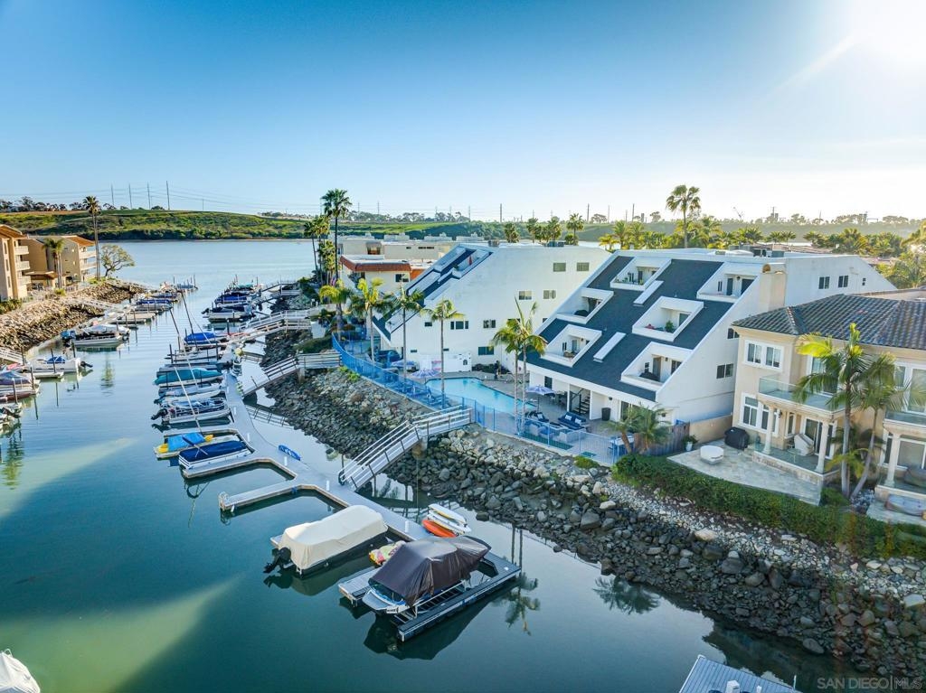 Discover the exclusive waterfront community of The Bristol Cove Condominium Complex privately nestled on the most western inlet of the Carlsbad Lagoon covering more than 1,000 acres of nature preserves, hiking trails and water recreation areas providing a luxurious coastal lifestyle like none other. This waterfront retreat is a true sanctuary of relaxation and beauty. Amenities include a resort style pool/spa, sunbathing lounge chairs, outdoor dining area, fire place, BBQ, clubhouse (with pool and ping pong tables), nearby private boat launch, Access to PRIVATE DOCK/BOAT SLIP with dry storage parking for boat/trailer, 2 garaged parking spots, scenic coastal backdrops and steps away from the water. This newly renovated captivating 2 story residence spans 1,128 square feet featuring stainless steel appliances, custom cabinetry, high vaulted ceilings, dual pain windows, ensuite washer dryer, modern style barn doors, 2 large balconies, a generously sized master bedroom with a stunning master bath best described as a personal spa. Do not miss out on this incredible opportunity to secure this pristine California coastline sanctuary only minutes away from local highways, beaches, attractions, restaurants, boutiques and the prestigious Carlsbad Unified School District. Phenomenal opportunity! Do not miss out!