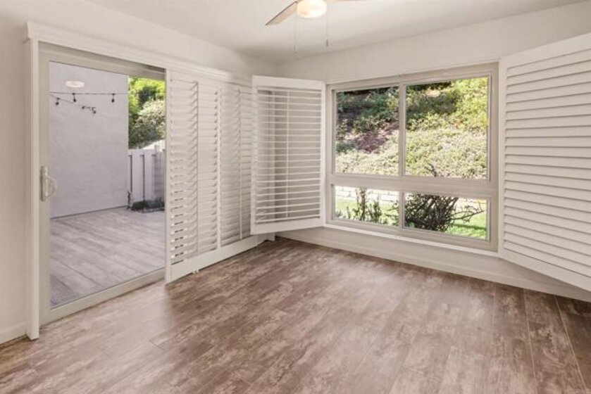 Beautiful, light and bright truly move-in ready townhome located in desirable Carlsbad Palisades. Recent upgrades include kitchen with stainless steel appliances, peninsula w/large sink and pendant lighting looking out to the lovely back yard view, custom soft-close cabinetry and drawers, granite countertops and under cabinet lighting. All three bathrooms are upgraded with granite countertops, custom soft-close cabinets, beautiful tiled showers (full baths). This home comes with new flooring, double-pane UV windows, shutters on windows throughout, and a custom front door. You'll enjoy the trees and flowers and the sounds of birds chirping while sitting on the peaceful and private lower-level fenced and gated patio with wood-look porcelain planks and a large second level patio deck located directly off the huge primary suite. Secondary bedroom has its own full bathroom as well! Two car garage has direct access to the home. Complex has two pools, two hot tubs, combination tennis/pickleball/basketball court. Plenty of guest parking. This is a must-see!