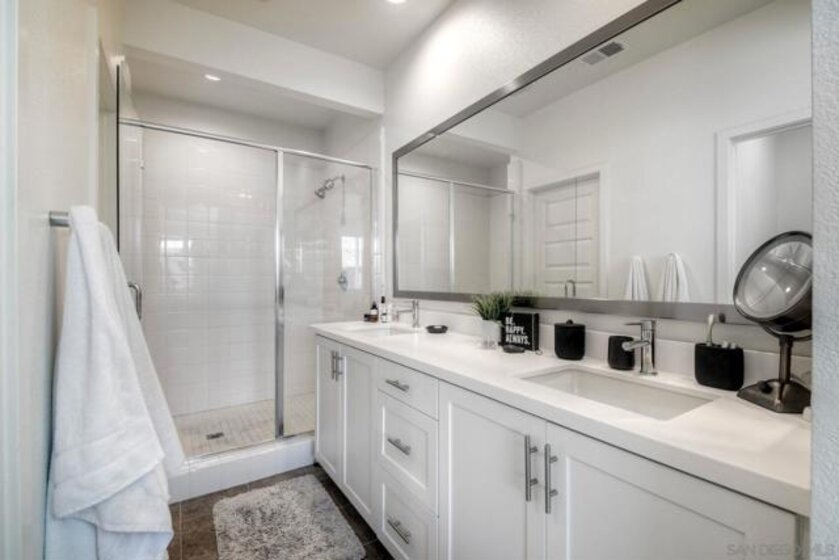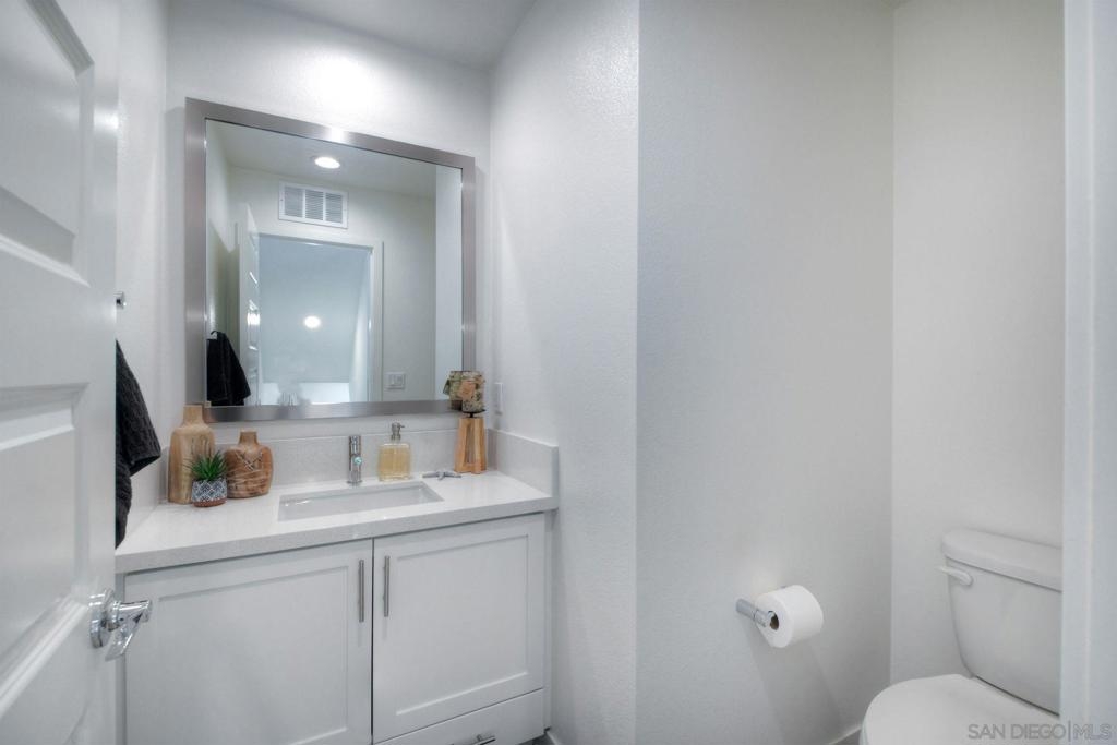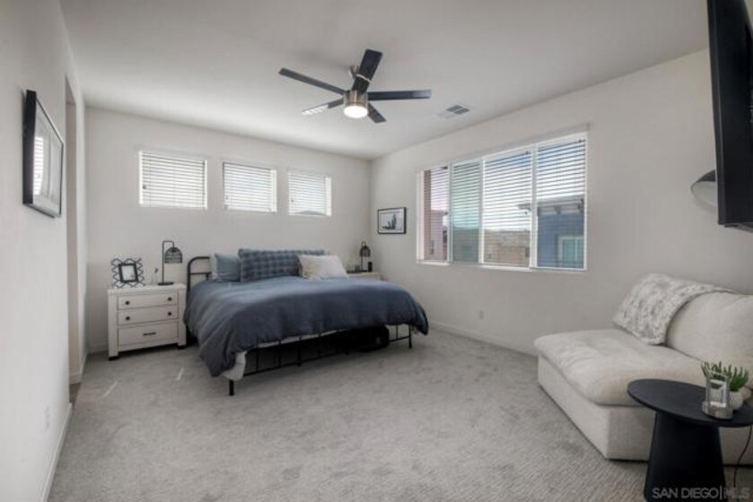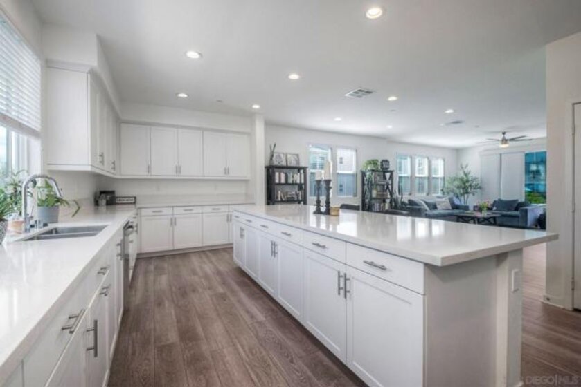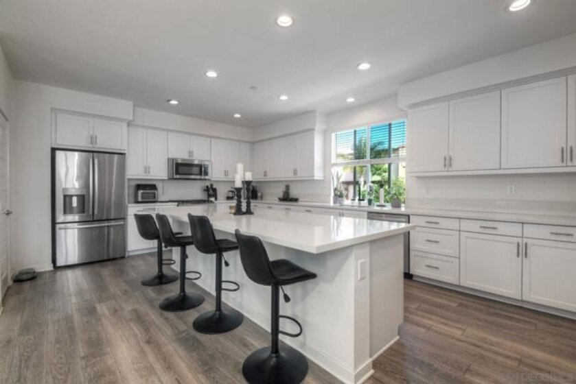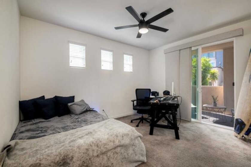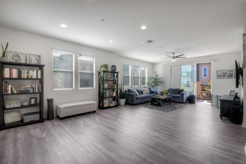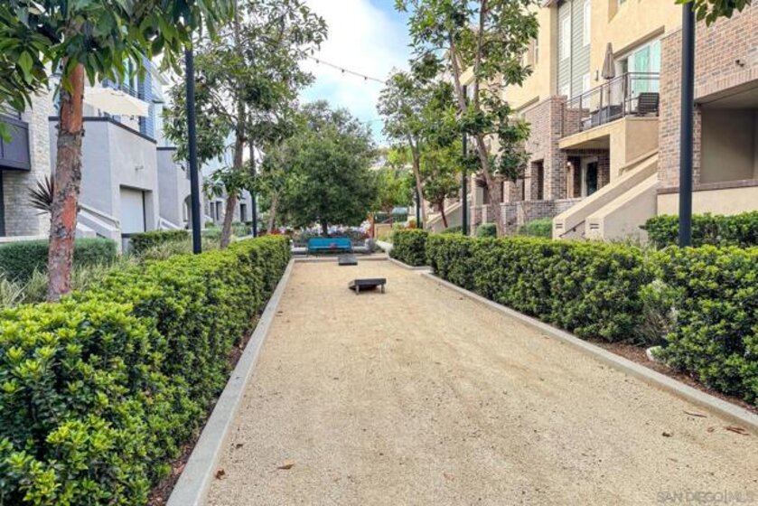 Rare corner residence in Kensington at the Square offering exceptional privacy, owned solar, EV charging, and a highly walkable location just steps from Bressi Ranch Village. Set on the outer edge of the building with no neighbor on one side, this light-filled tri-level townhome enjoys extra windows, coastal breezes, and a bright, airy ambiance throughout. Thoughtfully upgraded, the home features new carpet, updated kitchen and baths, and a versatile layout designed for modern living. The first-floor bedroom with private patio is ideal for guests, a home office, or fitness retreat. On the main level, the updated kitchen opens seamlessly to the living room and private balcony overlooking the bocce ball court and neighborhood, creating an inviting space for both everyday living and entertaining. Energy-efficient features include owned solar, smart home technology, an EV charger in the garage, additional storage, and nearby community EV charging stations. Located adjacent to Bressi Ranch Village, this home offers the rare opportunity to enjoy dining, coffee, shopping, fitness, and parks just outside your door, all within the peaceful setting of one of Carlsbad’s most desirable communities.
