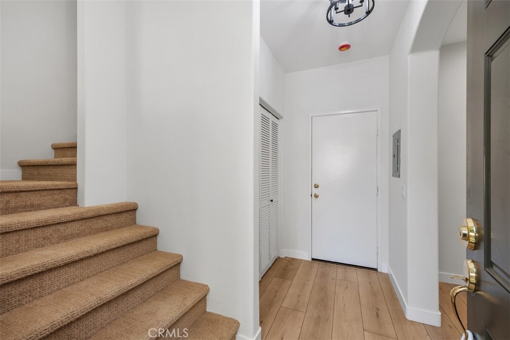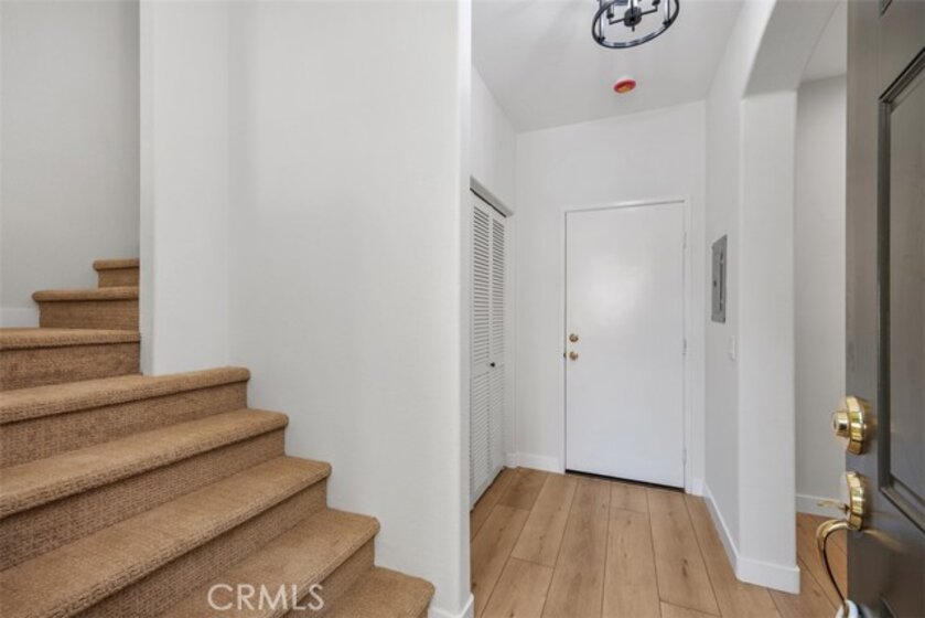 Positioned as one of the best values in Rancho Carrillo this interior home in Cascada offering a flexible 3 bedroom, 3 Full Bath layout plus optional main level office/4th bedroom, modern upgrades, and effortless North County coastal living. Recent upgrades include remodeled kitchen, luxury vinyl plank flooring, new carpeting on stairs, fresh interior paint throughout, updated lighting fixtures and contemporary finishes throughout. The refreshed kitchen features quartz countertops, updated cabinetry, subway tile backsplash, and modern appliances, opening to the dining and living areas with a cozy fireplace and abundant natural light. Two bedrooms offer en-suite baths, including an upstairs primary suite with private balcony, walk-in closet, and bath. Additional highlights include two private balconies, central A/C, attached 2-car garage with direct access, laundry with washer/dryer, and ample guest parking. Prime interior location just steps from the Cascada pool and spa, with access to the Rancho Carrillo Swim Center, trails, and Leo Carrillo Ranch Park. Located within top-rated Carrillo Elementary, San Elijo Middle, and San Marcos High. Minutes to Bressi Ranch, La Costa, shopping, dining, and major freeways. Turn-key and move-in ready. VA Assumable Loan at Approximately 3%. Terms and Conditions apply.