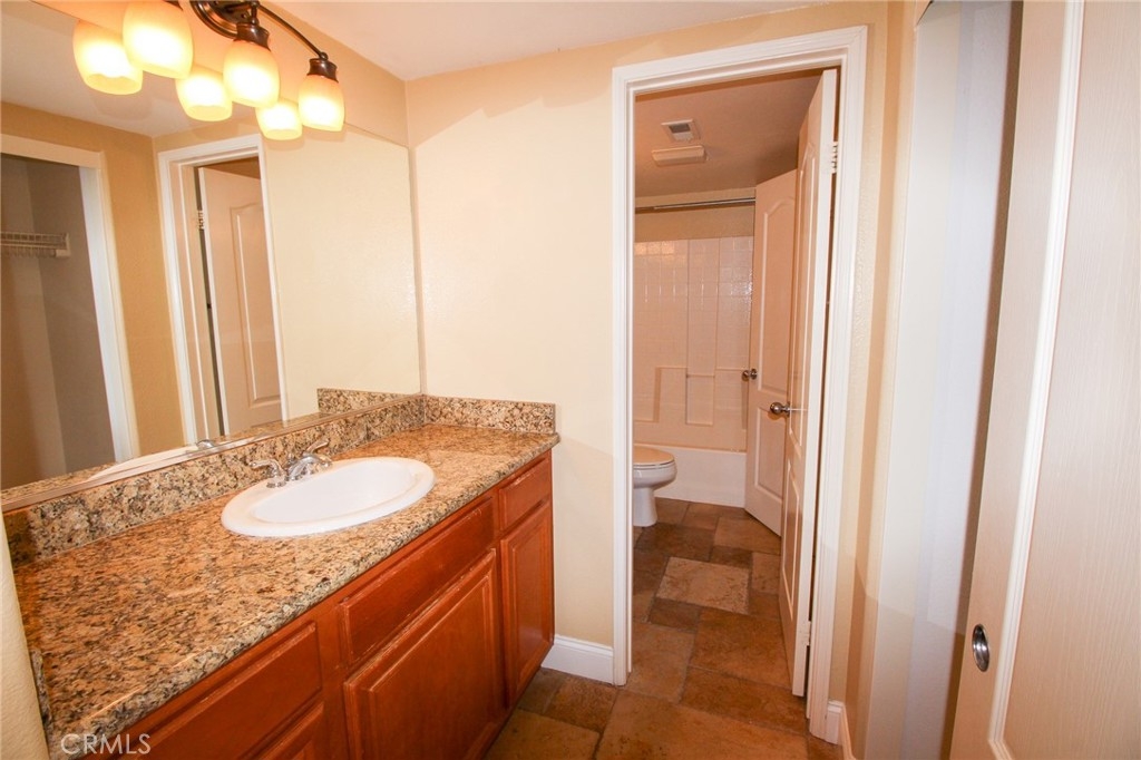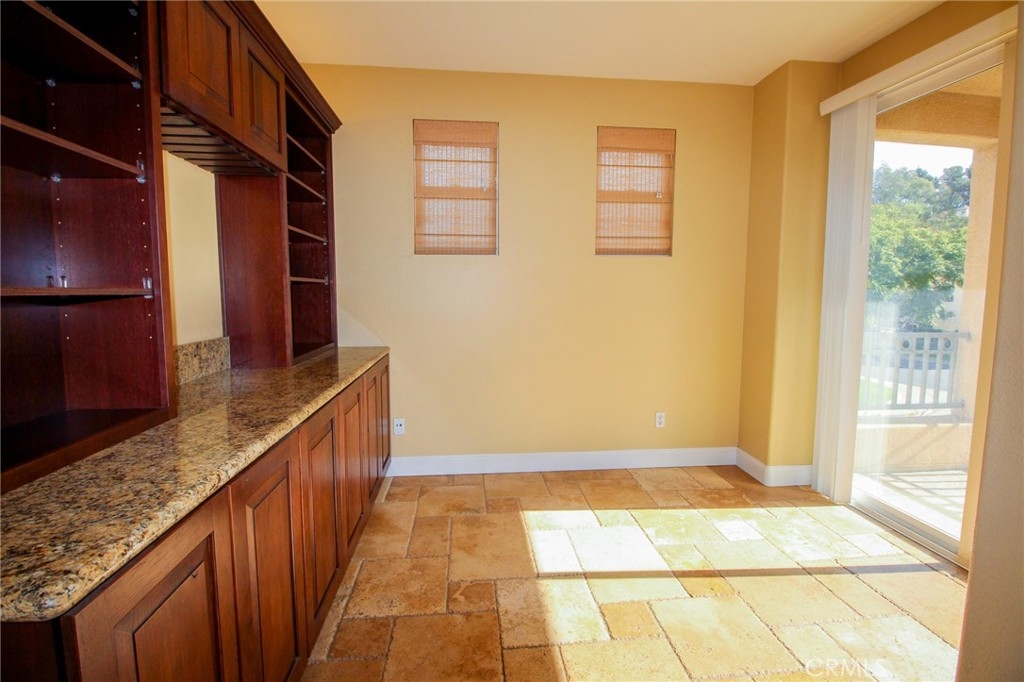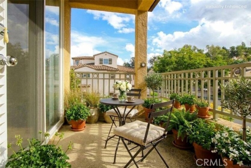 Now available in highly sought after Portico at Rancho Carrillo. Beautiful pride of ownership 2 bedroom, 2 bath condominium with high vaulted ceilings for that open air feel. Direct access from the attached two car garage. Amazing stone flooring laid in meticulous versaille style throughout. The hardwood stairs are so beautiful with Spanish tile raisers. The custom wrought iron rails on the staircase were so thoughtfully created and complemented by the custom pot rack hanging above the kitchen sink. The beautiful granite countertops are in the kitchen and throughout the condo. A Wall bookcase cabinet with wine glass holders was built-in to the Den which opens to the concrete deck for relaxing breaks to enjoy the ocean air. The living room boasts a well placed electric fireplace with a cozy flame. On the living area is a Bedroom, Bathroom, Living room, Den, Dining room and kitchen with plenty of cabinet space. Then you can simply ascend a short staircase to the upper floor for privacy to the primary suite. This floor is incredible with its walk in closet, double sink bathroom with tub and shower. Windows allow the daylight in and On one of those clear days you can peek a boo the ocean view. Located nearby is Leo Carrillo Ranch Historic park, Omni La Costa Spa & Resort, Golf Course,,Batiquitos Lagoon, Hyatt Aviara Four Seasons Resort & Golf Club, and Encinitas Ranch Golf Course . The Ocean is only minutes away ! Please come and experience this home for yourself.