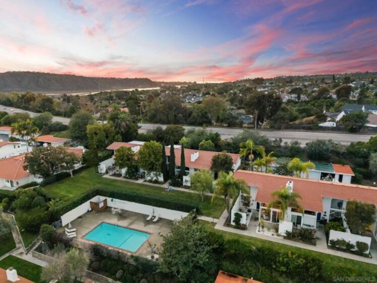 This beautifully updated Mid-Century Modern townhome captures the timeless charm of the original La Costa lifestyle—once a favorite escape for Hollywood icons and the Rat Pack. Designed by famed architect Edward Fickett, a visionary who shaped post-war California Modernism with his iconic homes, resort properties, and award-winning mid-century designs, the residence reflects his signature blend of natural light, clean lines, and effortlessly livable style. Flooded with sun through tall windows and soaring ceilings, the home features thoughtful upgrades throughout, including luxury vinyl plank flooring, a recently remodeled kitchen, custom-designed bathrooms, and designer lighting—all while preserving the cool vintage character that makes the property truly unique. As an end unit, it offers exceptional privacy and serene views overlooking the tree-lined hills of La Costa. Enjoy morning coffee and sunrise on the quiet, low-maintenance front patio, or entertain in the private backyard or on the upstairs deck. The unit also sits next to the community pool and a large open green belt. Additional conveniences include a 1-car garage with onsite parking and storage. All just a short stroll to championship golf, great restaurants, and the world-class spa at the La Costa Resort. A rare opportunity to own a stylish, private retreat designed by one of California’s most celebrated architects—perfectly situated close to beaches, shopping, and top-rated schools.