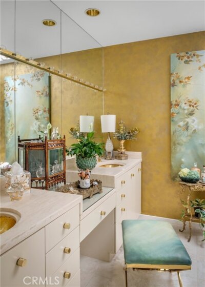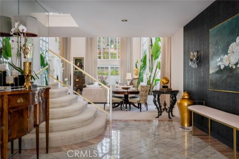 A rare opportunity to own an exceptional residence in the prestigious gated community of The Jockey Club, just a short golf-cart ride to the renowned Omni La Costa Resort & Golf Course. Celebrated for its distinctive European architecture, impeccably maintained grounds, and lovely tiered fountain, this community offers a truly elegant arrival experience. This exquisite townhome opens into the grand foyer and formal living spaces that immediately evoke a sense of Old Hollywood glamour. Thoughtful design choices preserve much of the home’s original character, from classic doorknobs to mirrored doors, while elevated finishes enhance its timeless charm. Venetian plaster, designer wallpaper, hand-painted artistic walls, and glass-paneled stair railings are just a few of the tailored details that deliver undeniable wow factor. Soaring 20-foot floor-to-ceiling windows flood the home with natural light, framing the dramatic marble fireplace. An upgraded kitchen features refined countertops, statement sink and faucet, custom vented hood, wine cooler and gold overlay plaster backsplash, bringing every detail together seamlessly. The layout also includes 2 spacious bedrooms, 2.5 elegantly appointed bathrooms and a beautifully designed laundry room plus 2-car garage. Two sets of double doors open to a remarkably private and serene back patio, complete with a tranquil fountain, lounging area, and space for alfresco dining—an ideal setting for afternoon cocktails or quiet moments with a good book. This is a truly stunning property and will not last long. Call today to arrange a private showing.