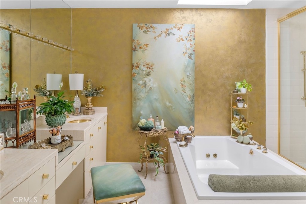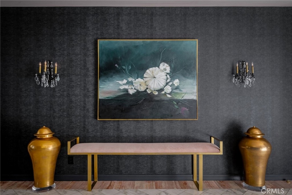 ** Seller to contribute $10,000 toward buyer closing costs ** A rare opportunity to own an exceptional residence in the prestigious gated community of The Jockey Club, just a short golf-cart ride to the renowned Omni La Costa Resort & Golf Course. Celebrated for its distinctive European architecture, impeccably maintained grounds, and lovely tiered fountain, this community offers a truly elegant arrival experience. This exquisite townhome opens into the grand foyer and formal living spaces that immediately evoke a sense of Old Hollywood glamour. Thoughtful design choices preserve much of the home’s original character, from classic doorknobs to mirrored doors, while elevated finishes enhance its timeless charm. Venetian plaster, designer wallpaper, hand-painted artistic walls, and glass-paneled stair railings are just a few of the tailored details that deliver undeniable wow factor. Soaring 20-foot floor-to-ceiling windows flood the home with natural light, framing the dramatic marble fireplace. An upgraded kitchen features refined countertops, statement sink and faucet, custom vented hood, wine cooler and gold overlay plaster backsplash, bringing every detail together seamlessly. The layout also includes 2 spacious bedrooms, 2.5 elegantly appointed bathrooms and a beautifully designed laundry room plus 2-car garage. Two sets of double doors open to a remarkably private and serene back patio, complete with a tranquil fountain, lounging area, and space for alfresco dining—an ideal setting for afternoon cocktails or quiet moments with a good book. This is a truly stunning property and will not last long. Call today to arrange a private showing.