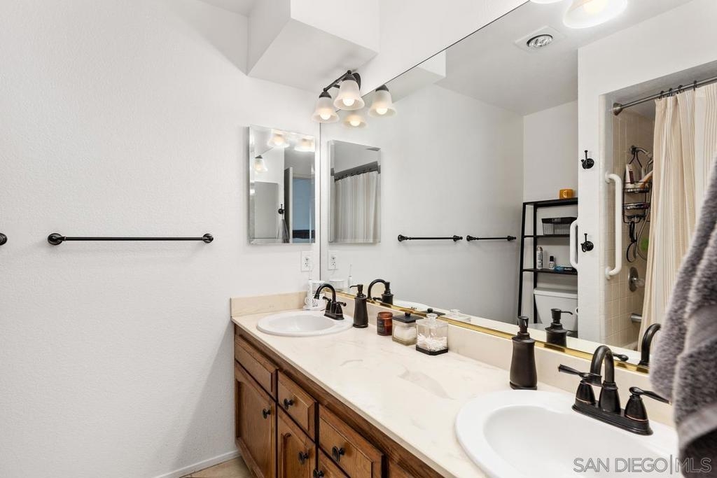 This spacious two-story townhome, brimming with possibilities, is nestled within Sandtrap Villas in La Costa. Perfectly situated just off La Costa Avenue, this home places you mere moments away from a vibrant array of shopping and dining options. The living room opens up to a Trex balcony, offering a charming spot to enjoy your morning coffee or unwind in the evenings. The thoughtful layout of this townhome makes it an excellent choice for roommates or multi-generational living. With bedrooms located on separate floors, each occupant enjoys their own private living experience. Two car attached garage with storage. Newer windows in home.