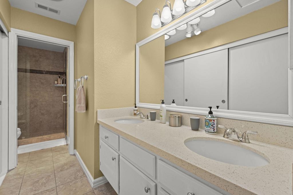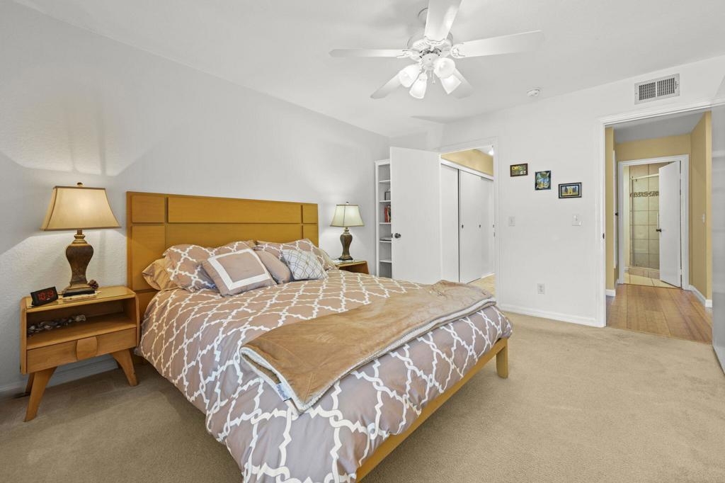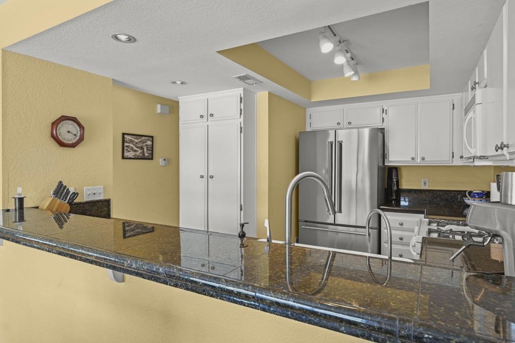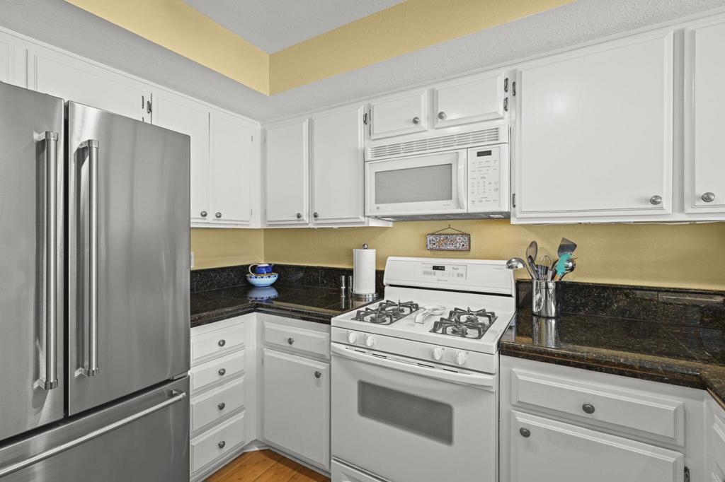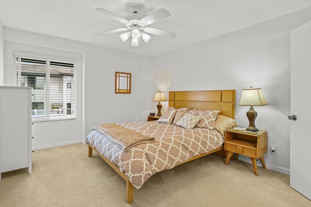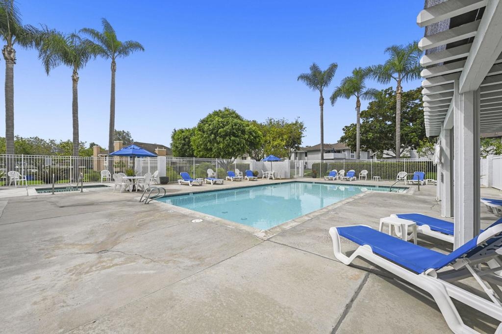 Less than a mile to Carlsbad State Beach. Make this your full time or 2nd home. Wonderful upstairs corner unit condo in coveted Carlsbad Crest, filled with upgrades and natural light, with a large patio to enjoy ocean breezes. Enjoy thick plank bamboo flooring, custom paint, wood blinds, granite kitchen tile counters, beautiful ceramic tile shower and remodeled bathrooms, including aa added shower in what was originally a 1/2 bath, upgraded fixtures, spacious patio and more. The exterior is freshly painted. Move-in ready and less than a mile to beach, shopping, dining, parks! Located in the lovely beach-close community of Carlsbad Crest you will enjoy the outdoor relaxation and ocean breezes from a spacious patio. A beautiful tree-lined complex that features 2 community pools/spas, and is just a short distance to shopping, dining and the beach. This home includes a covered carport space and large storage closet that also has an EV Charger. One of the very few homes in this community with that convenience. Come live the Carlsbad lifestyle today.